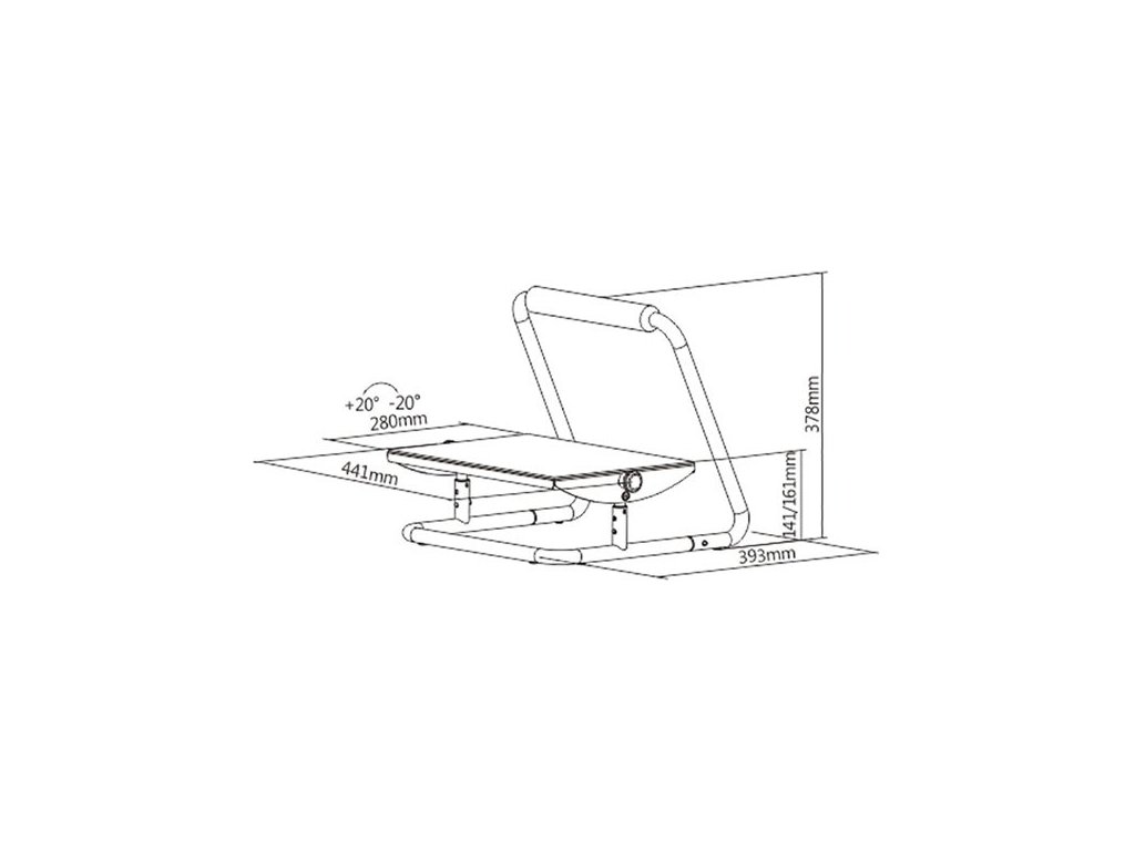 Výškovo nastaviteľná opierka na nohách Hojdacia opierka na nohy núti nohy sedieť aktívne, aby dolné končatiny alebo stuhnuté. Podporuje žilový návrat krvi do srdcového svalu. Podnožka je výškovo nastaviteľná a jej konštrukcia umožňuje natiahnutie noh. Zabezpečí vám čo najpohodlnejšie sedenie. Funkcia naklápania Funkcia náklonu poskytuje ľuďom so sedavým zamestnaním možnosť znížiť namáhanie a únavu nôh. Je tiež ideálna pre tých, ktorí sa pohybom zbavujú nervozity. Ak nechcete používať funkciu naklonenia, jednoducho uzamknite základňu v takom sklone v rozmedzí -20 ° - 20 °, ktorý vám najviac vyhovuje. Nastavenie výšky Základňa vyhovuje potrebám každého. Vďaka nastaveniu výšky 14/16 cm si môžete základňu nastaviť presne na takú výšku, akú potrebujete, aby ste sedeli v správnej ergonomickej výške a starali sa o svoje zdravie. Natiahnite si nohy Keď sú vaše nohy veľmi unavené, môžete si pomocou rukoväte/opierky noh jednoducho oprieť nohy a tak si ich natiahnuť. Aby bolo naťahovanie pohodlné, rukoväť/opierka je vybavená mäkkým polstrovaním. Protismykové podložky Protismykové podložky na nohách zabezpečujú dokonalú stabilitu stojana. Zabezpečujú tiež, aby stojan nepoškriabal ani neodrel vašu podlahu. Jednoduchá montáž Na zostavenie stojana nepotrebujete žiadne náradie, všetko je veľmi jednoduché. Stačí zasunúť rukoväť/opierku noh do spodnej konštrukcie podstavca, nastaviť výšku a je hotovo. Technické údaje Nastavenie výšky: 14,1 / 16,1, cm Uhol sklonu: +20 ° ~ -20 ° Materiál: ocel Rozmery: 441 x 398 x 378 mm Nosnosť: 25 kgDodatočné parametre