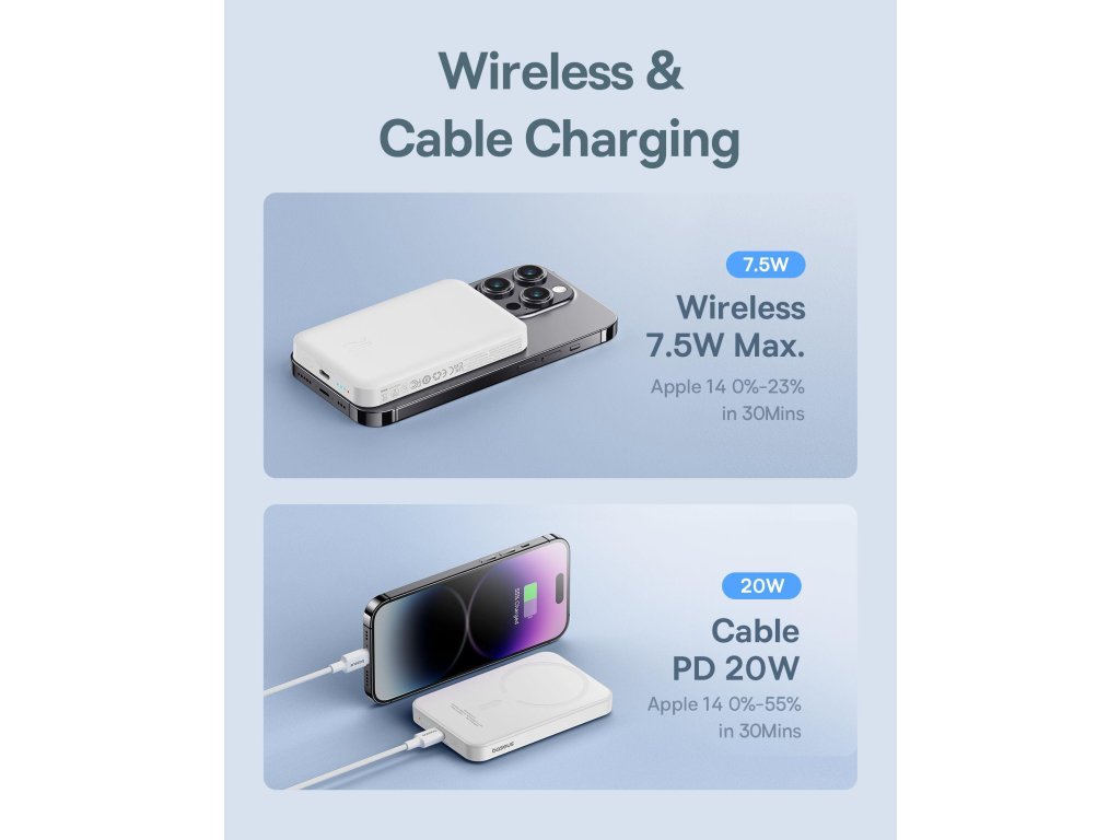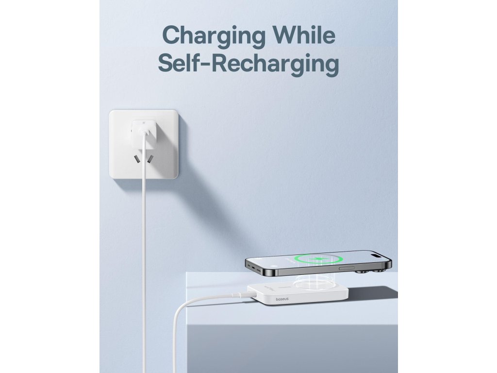 Pohodlné nabíjanie Magnetická mini powerbanka Baseus je ideálnym riešením pre tých, ktorí oceňujú pohodlné nabíjanie svojich zariadení. Táto malá powerbanka s veľkou kapacitou 5000 mAh vám umožní niekoľkokrát dobiť váš smartfón bez toho, aby ste museli hľadať zásuvku alebo prerušiť prácu zariadenia. Jej magnetický dizajn je nielen estetický, ale aj funkčný, pretože pevne priľne k vášmu telefónu a umožní vám mimoriadne pohodlné bezdrátové nabíjanie. Teraz si môžete užívať plný komfort a spoľahlivý výkon kdekoľvek a kedykoľvek. premyslený dizajn Zariadenia Baseus vynikajú nielen svojim výkonom, ale aj premysleným dizajnom. Vďaka svojej malej hrúbke ľan 14,7 mm sa pohodlne zmestia do kapsy alebo kabelky, takže je vynikajúcim spoločníkom na každý výlet alebo každodenné používanie. Napriek kompaktným rozmerom zaručuje bezpečné nabíjanie vášho zariadenia, takže sa nemusíte obávať jeho prípadného poškodenia. Táto powerbanka dokonale spája praktičnosť s elegantným dizajnom a splní očakávania aj tých najnáročnejších užívateľov. technické parametre: - kapacita: 5000 mAh - typ batérie: lithium polymerová - výstup USB-C: 5V = 3A, 9V = 2A - vstup USB-C: 5V = 2,4A; 9V=2,22A; 12V=1,5ADodatočné parametre