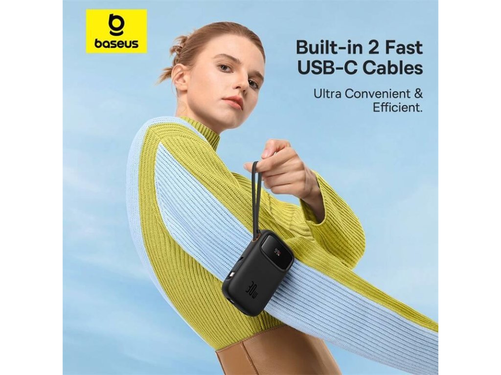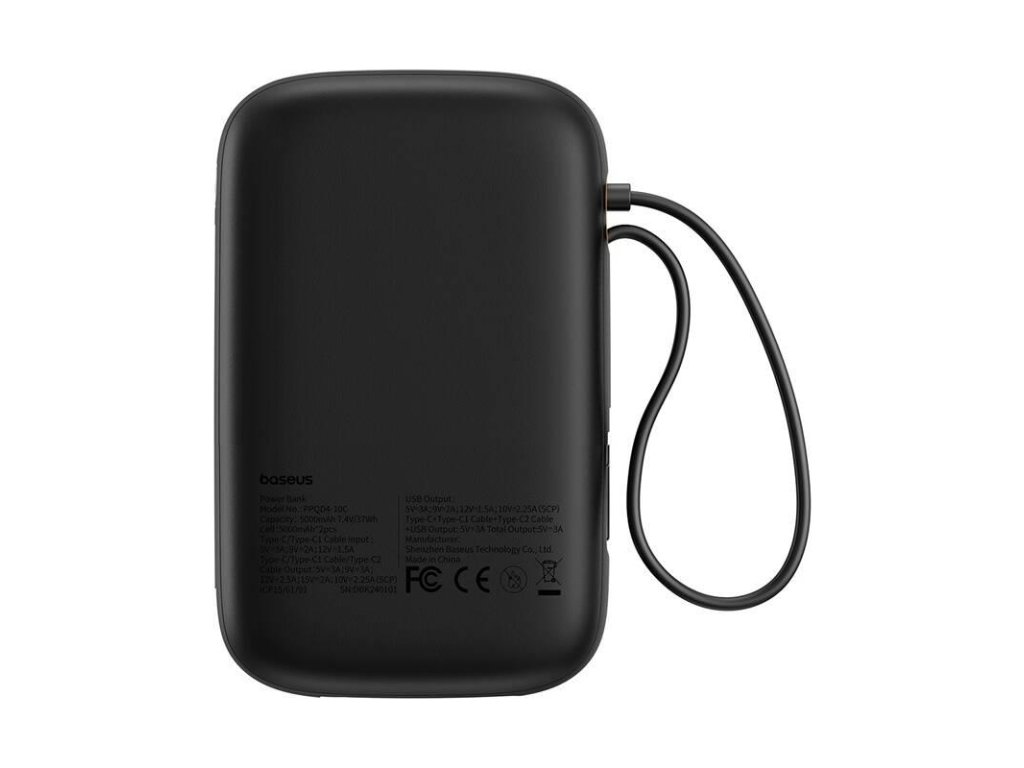 Power banka Baseus Qpow2 10000mAh 30W čierna s káblom USB-C