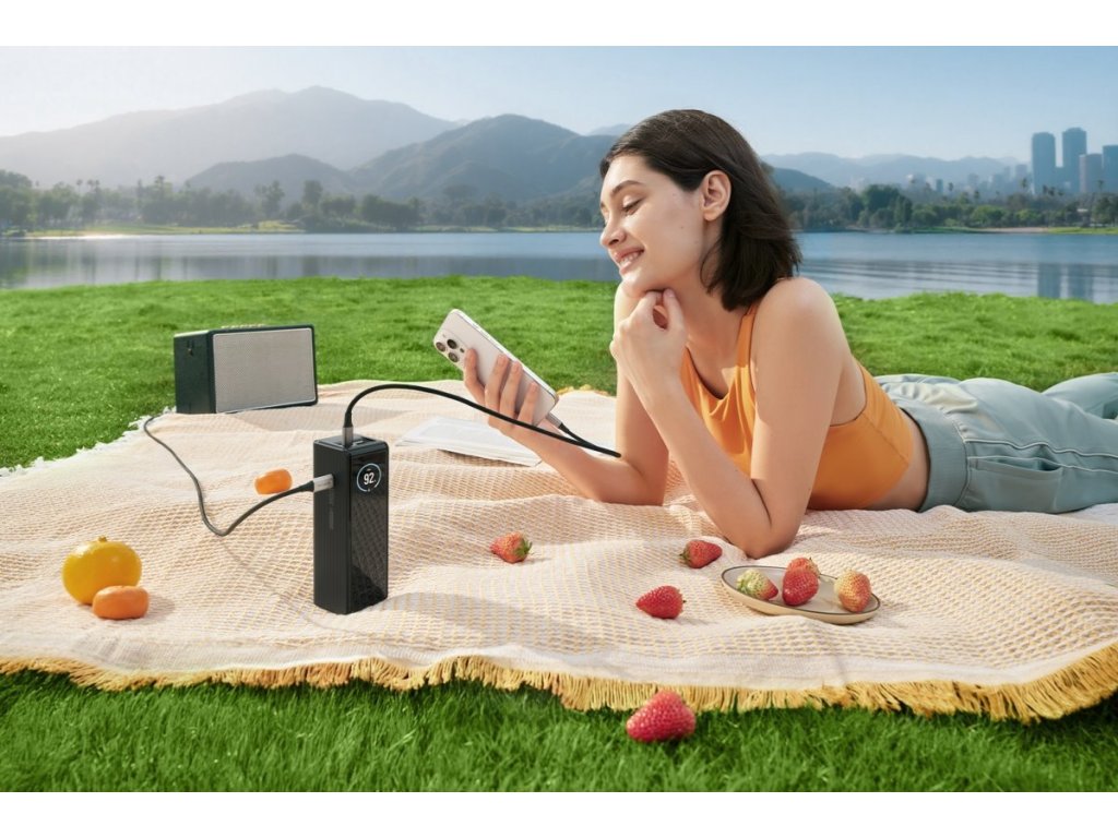 Power banka EcoFlow RAPID s kapacitou 25 000 mAh, power banka s maximálnym výkonom 170 W. Maximálny výkon na portu USB-C umožňuje nabíjanie až 140 W. Jej aktuálne provozní podmienky možno priebežne sledovať na TFT displeji. Originálna technológia X-Guard nepretržite monitoruje celý proces nabíjania, aby sa zabezpečila bezpečná a stabilná prevádzka. Powerbanka sa dokáže nabiť na 50% už za 20 minút. Power banka EcoFlow RAPID 25 000 mAh je vďaka svojej kapacite, kompaktnému dizajnu a výkonu ideálnym úložiskom energie pre viacero zariadení. Jej exkluzívny dizajn, prehľadný displej, ale predovšetkým jej výkonnostné schopnosti ju radí medzi špičku vo svojej kategórii. Rýchla distribucia energie Dokáže nabíjať tri zariadenia súčasne, a to až do kombinovaného výkonu 170 W. Powerbanka je vybavená 2x USB-C, ktoré dokáže nezávisle dodávať zariadeniam až 140 W. K dispozícii je aj USB-A, ktoré samostatne ponúka až 33 W. Unikátna je rýchlosť nabíjania 25 000 mAh 37 minút. Prehľadné ovládanie Inteligentný TFT displej dynamicky zobrazuje kapacitu v reálnom čase, priebeh napájania, stav batérie, teplotu, nabíjacie cykly a ďalšie údaje. Je vysoko kontrastný, čo vám umožňuje kontrolovať údaje za akýchkoľvek svetelných podmienok. Bezpečnosť Nová technológia EcoFlow X-Guard chráni stav batérie. EcoFlow RAPID nepretržite monitoruje proces nabíjania pomocou štvornásobnej ochrany, ktorá zabraňuje prebíjaniu, nadmernému vybíjaniu, prehriatiu a skratu, čím zabezpečuje bezpečný a stabilný prevádzku. Napájanie 1x USB port: C1/C2: 140 W A: 33 W 2x port C1+C2 = 70 W+70 W C1+A = 140 W+33 W C2+A = 15 W+15 W 3x Port C1+C2+C3 = 140 W+15 W+1 mAh Životnosť: 300 cyklov do poklesu kapacity na 80 % Maximálny príkon: 140 W Maximálny výkon na port: 140 W Maximálny celkový výkon: 170 W Typ portu: 2x USB-C, 1x USB-A 45 °C Teplota vybíjania: -10 °C až 45 °C Teplota skladovania: -20 °C až 45 °C Nadmorská výška: <3000 mDodatočné parametre