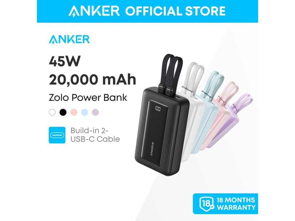 Powerbank Anker Zolo 20 000 mAh, 45 WKompaktný a výkonný prenosný zdroj energie ideálny na nabíjanie smartfónov, tabletov a iných zariadení na cestách.