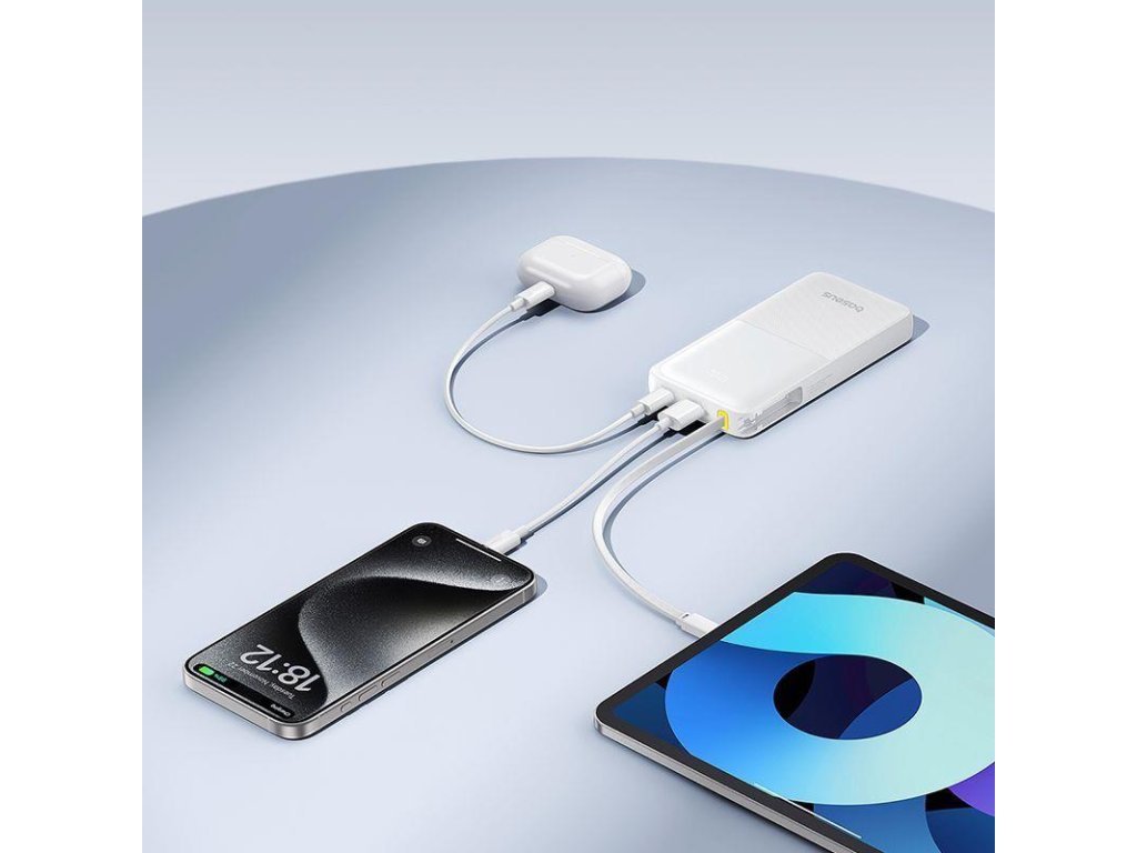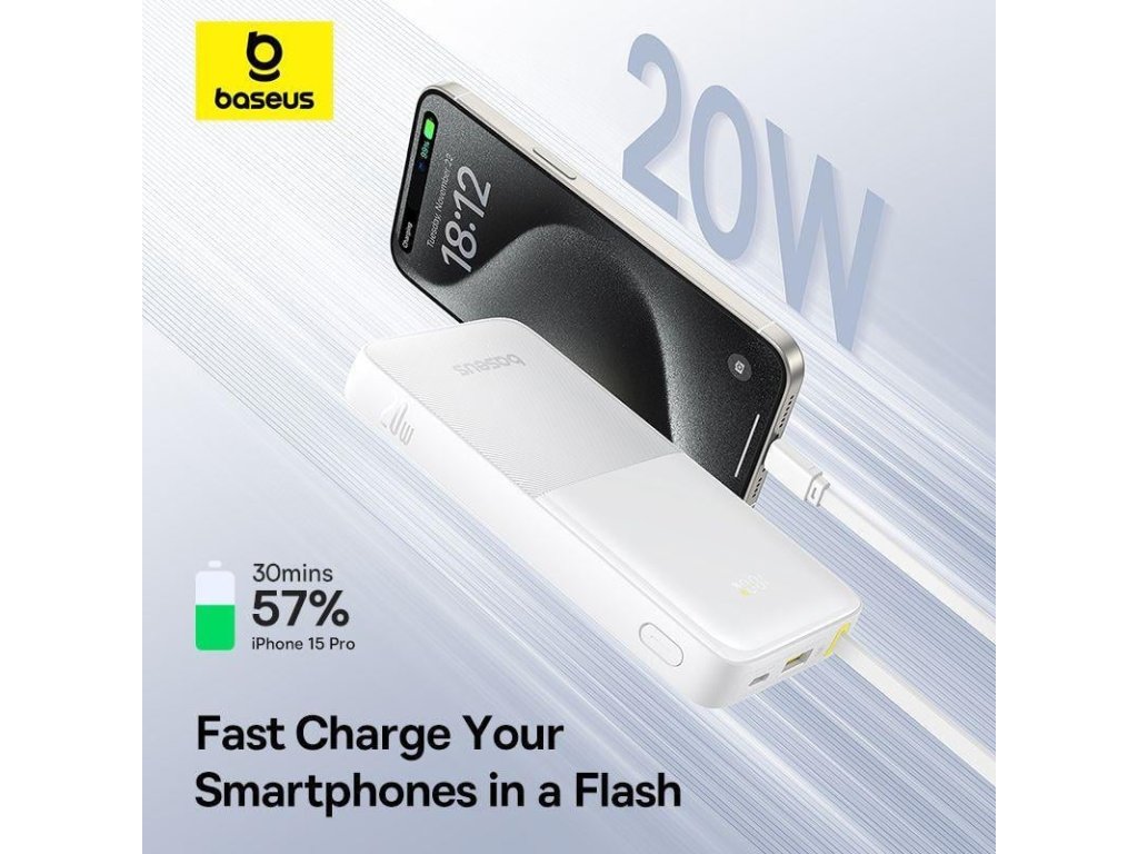 Power banka Baseus Bipow 10000mAh 20W je kompaktná vysokokapacitná power banka určená pre užívateľov na cestách. Táto powerbanka s funkciou rýchleho nabíjania, vstavaným káblom typu C, je výkonná a užívateľsky prívetivá, takže je ideálnou voľbou na nabíjanie smartfónov, tabletov a iných elektronických zariadení. Batérie s kapacitou 10 000 mAh Táto powerbanka s kapacitou 1 0 0 mAh poskytuje dostatok energie na viacnásobné nabitie väčšiny smartfónov, takže budete vždy pripojení. 20 W výstup na rýchle nabíjanie Poskytuje rýchle a efektívne nabíjanie kompatibilných zariadení, vďaka čomu sa váš telefón vráti do plnej energie za kratší čas. Vďaka výstupným portom USB-A a USB-C a integrovanému káblu typu C, power banka umožňuje nabíjať viacero zariadení súčasne. Digitálny displej napájania Obsahuje digitálny displej, ktorý v reálnom čase zobrazuje zostávajúcu úroveň nabitia batérie a stav nabíjania, čím vám pomáha efektívne riadiť spotrebu energie. Široká kompatibilita Kompatibilný s celou radou zariadení vrátane smartfónov, tabletov a inej elektroniky s rozhraním USB, čo z neho robí univerzálnu voľbu pre každého užívateľa techniky. Kompaktný a ľahký dizajn Vďaka štíhlemu profilu a hmotnosti 271 g sa ľahko prenáša a pohodlne sa pojme do kapsy alebo tašky.Dodatočné parametre