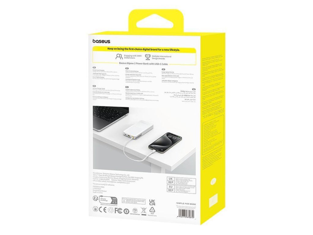 Powerbank Baseus Bipow 2 10000mAh 20W s káblom USB-C biela