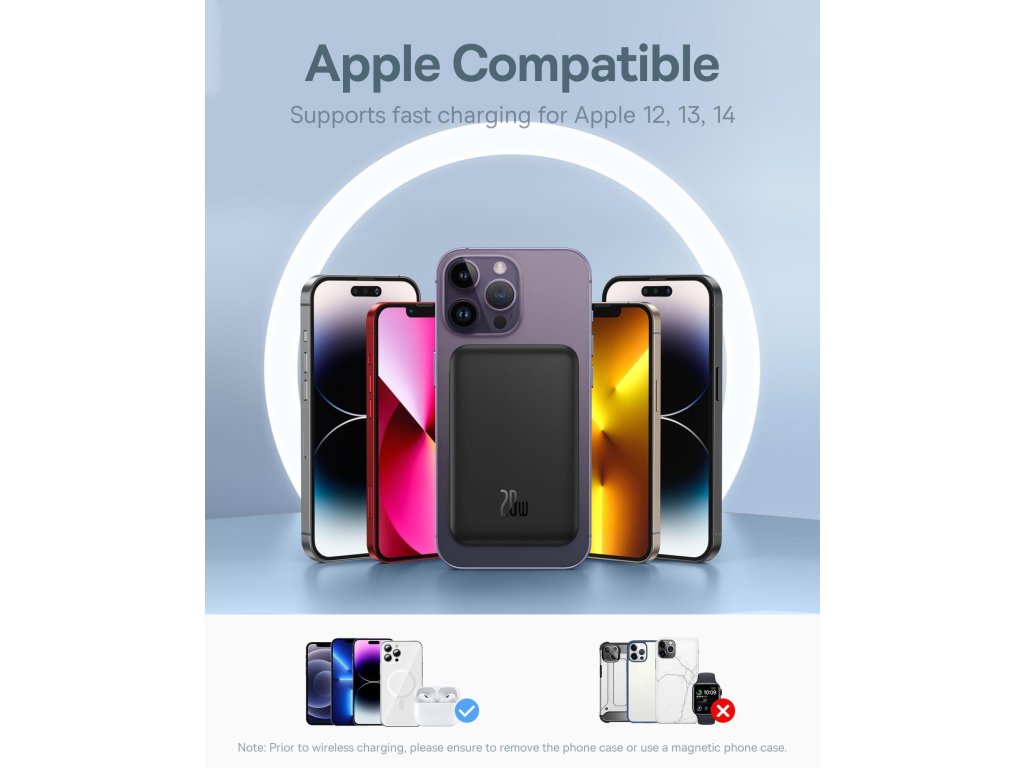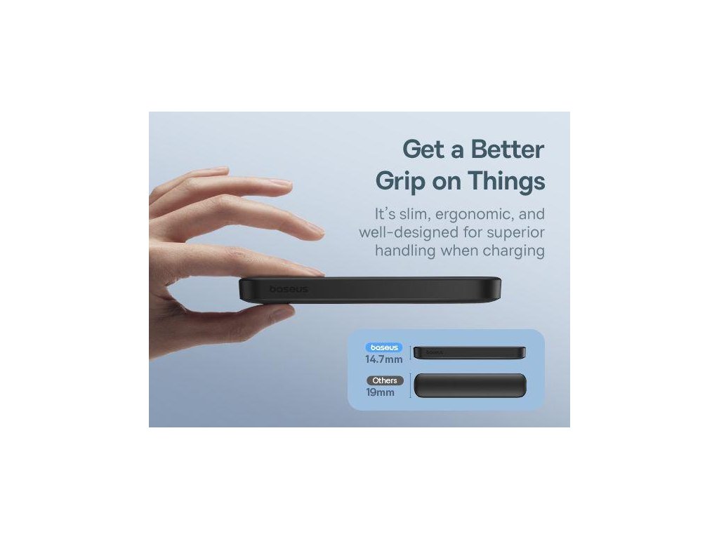Pohodlné nabíjanie Magnetická mini powerbanka Baseus je ideálnym riešením pre tých, ktorí oceňujú pohodlné nabíjanie svojich zariadení. Táto malá powerbanka s veľkou kapacitou 5000 mAh vám umožní niekoľkokrát dobiť váš smartfón bez toho, aby ste museli hľadať zásuvku alebo prerušiť prácu zariadenia. Jej magnetický dizajn je nielen estetický, ale aj funkčný, pretože pevne priľne k vášmu telefónu a umožní vám mimořádne pohodlné bezdrátové nabíjanie. Teraz si môžete užívať plný komfort a spoľahlivý výkon kdekoľvek a kedykoľvek. premyslený dizajn Zariadenia Baseus vynikajú nielen svojim výkonom, ale aj premysleným dizajnom. Vďaka svojej malej hrúbke ľan 14,7 mm sa pohodlne zmestia do kapsy alebo kabelky, takže je vynikajúcim spoločníkom na každý výlet alebo každodenné používanie. Napriek kompaktným rozmerom zaručuje bezpečné nabíjanie vášho zariadenia, takže sa nemusíte obávať jeho prípadného poškodenia. Táto powerbanka dokonale spája praktičnosť s elegantným dizajnom a splní očakávania aj tých najnáročnejších užívateľov. technické parametre: - kapacita: 5000 mAh - typ batérie: lithium polymerová - výstup USB-C: 5V = 3A, 9V = 2A - vstup USB-C: 5V = 2,4A; 9V=2,22A; 12V=1,5ADodatočné parametre