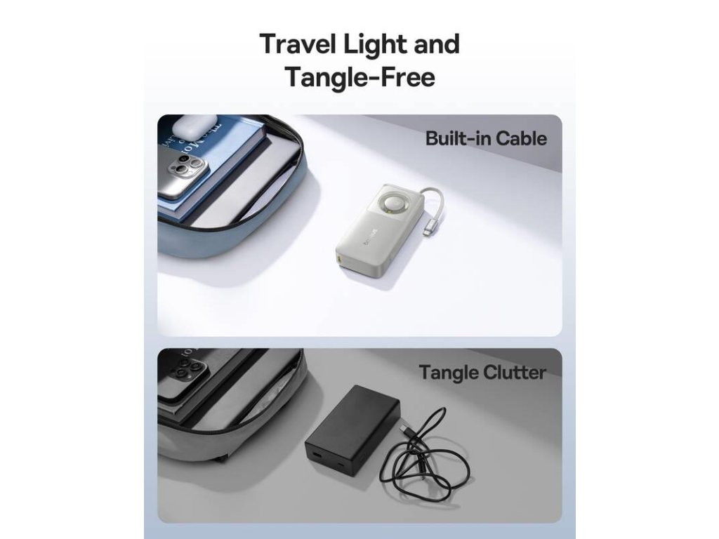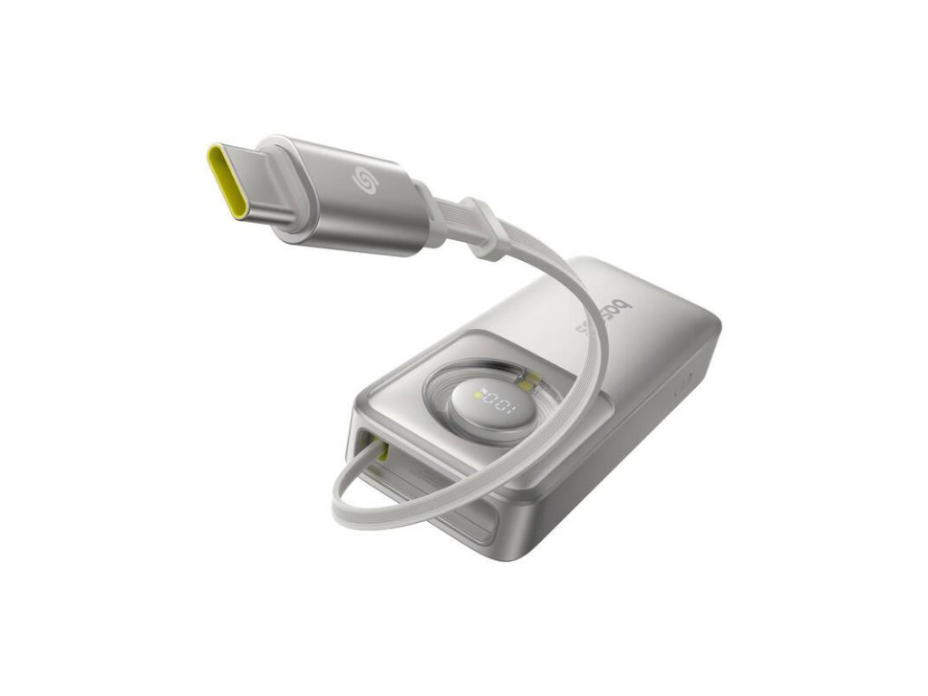 Predĺžená životnosť zariadenia vďaka vysokej kapacite Powerbanka Baseus Free2Pull je vybavená bateriou s kapacitou 10 000 mAh, ktorá vám umožní používať zariadenie dlhý čas bez obáv z náhleho vybitia. Schopnosť nabiť iPhone 15 Pre takmer dvakrát znamená, že vaše zariadenia budú vždy pripravené na prácu. Či už ste na cestách, na obchodnom rokovaní alebo v teréne, Baseus Free2Pull vám poskytne spoľahlivý zdroj energie. Nabíjajte dve zariadenia súčasne - ideálne na cesty Jednou z jedinečných výhod powerbanky Baseus Free2Pull je možnosť nabíjať dve zariadenia súčasne. Vďaka zabudovanému káblu USB-C a portu USB-C môžete nabíjať telefón a tablet súčasne, čo je ideálne pre častých cestovateľov. Už si nemusíte vyberať, ktoré zariadenie nabijete ako prvé – teraz môžete nabíjať obe súčasne. Komfortné nabíjanie v každej situácii Zabudovaný 70 cm dlhý kábel USB-C je riešením, ktoré odstraňuje problém so zamotanými káblami a potrebu nosiť so sebou ďalšie pomôcky. Kabel sa ľahko odvíja a schováva v puzdre powerbanky, vďaka čomu je jeho používanie veľmi pohodlné. Prešiel testom 50 000 ohybov, čo dokazuje jeho odolnosť a spoľahlivosť aj pri náročnom používaní. Rýchle nabíjanie bez kompromisov Powerbank Baseus Free2Pull ponúka rýchle nabíjanie. Kabel USB-C a port USB-C umožňujú nabíjať zariadenia výkonom až 30 W a samotná powerbanka dokáže nabíjať výkonom až 18 W. To znamená, že či už nabíjate telefón, tablet alebo len powerbanku, celý proces je rýchly a efektívny.Dodatočné parametre