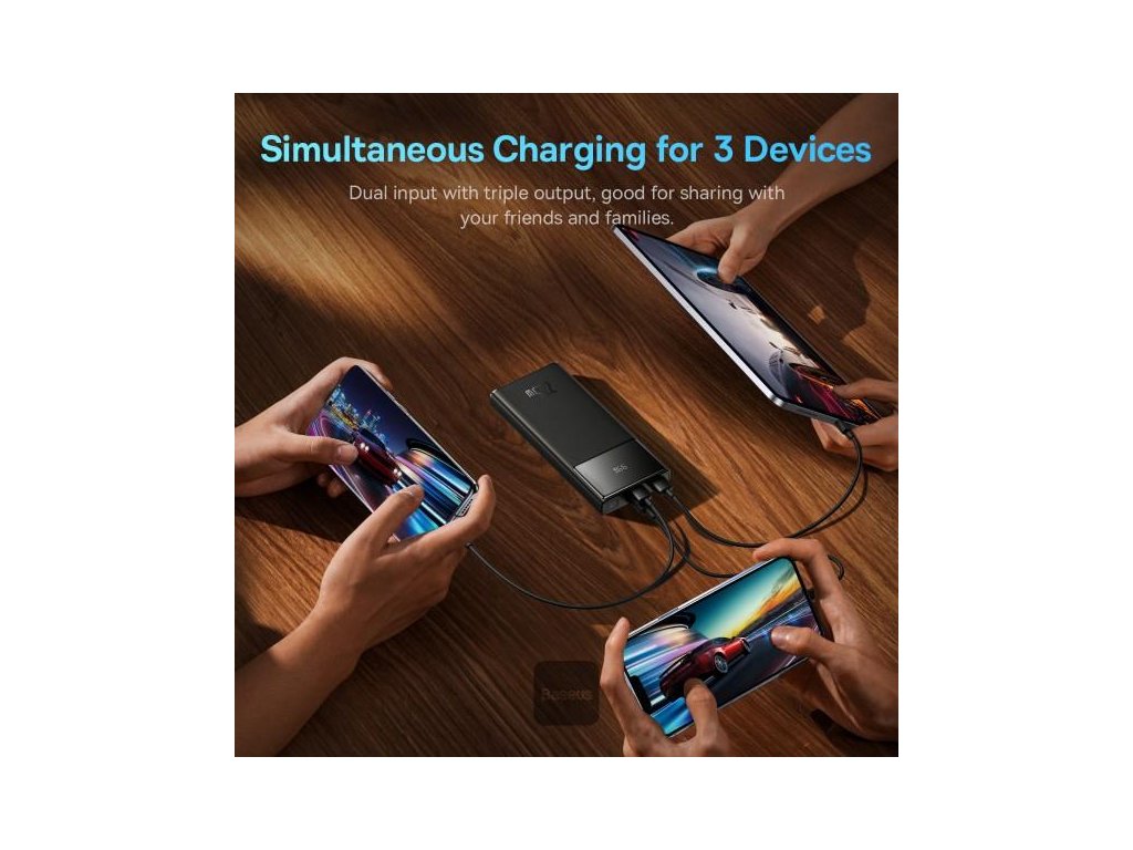 Baseus Star-Lord 10000mAh 22,5W powerbanka Nabíjejte až 3 zařízení najednou pomocí powerbanky od společnosti Baseus! Star-Lord se vyznačuje vysokým výkonem 22,5 W a mimořádnou rychlostí. Kapacita baterie je 10000 mAh. Zařízení si můžete vzít kamkoli s sebou - dokonce i do letadla. Star-Lord podporuje technologii rychlého nabíjení a jeho používání je díky víceúrovňové ochraně zcela bezpečné! Překvapivě rychle Star-Lord je 3x rychlejší než průměrná powerbanka a dokáže nabíjet 3 zařízení současně! Pro srovnání: rychlonabíjení PD 20W pro Apple 12, 13 a 14 zvýší úroveň nabití baterie vašeho zařízení na 50 % za 30 minut! To znamená, že už nemusíte donekonečna čekat, než bude váš telefon připraven k použití. Široká kompatibilita Zařízení je kompatibilní mimo jiné s Huawei SCP/FCP, Apple PD, Xiaomi QC a Samsung AFC. Produkt Baseus nabije váš telefon nebo tablet během okamžiku! Powerbanka je vybavena následujícími porty: Vstup Micro, vstup Type-C, výstup Type-C, výstupy USB1/USB2. Jak vidíte - možnosti jsou nekonečné! Bezpečnost používání V zařízení je zabudován teplotní senzor NTC, který spolu s inteligentním čipem zajišťuje bezpečné nabíjení a chrání před přehřátím. Powerbanka zaručuje víceúrovňovou ochranu proti přebíjení, přepětí, nadproudu, zkratu a elektromagnetickému poli. Můžete tak bez obav nabíjet svá vybraná zařízení! Promyšlený design Star-Lord je vybaven digitálním LED displejem, kteDodatočné parametre
