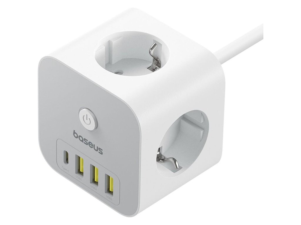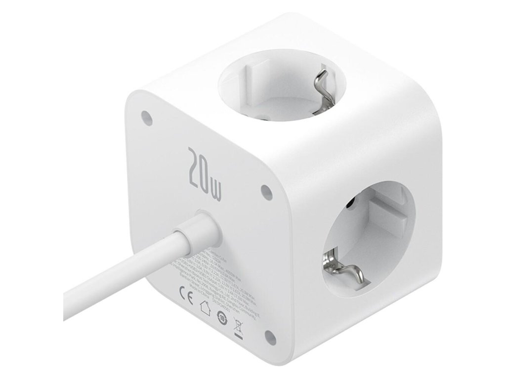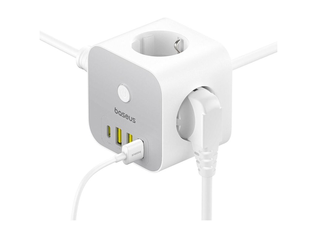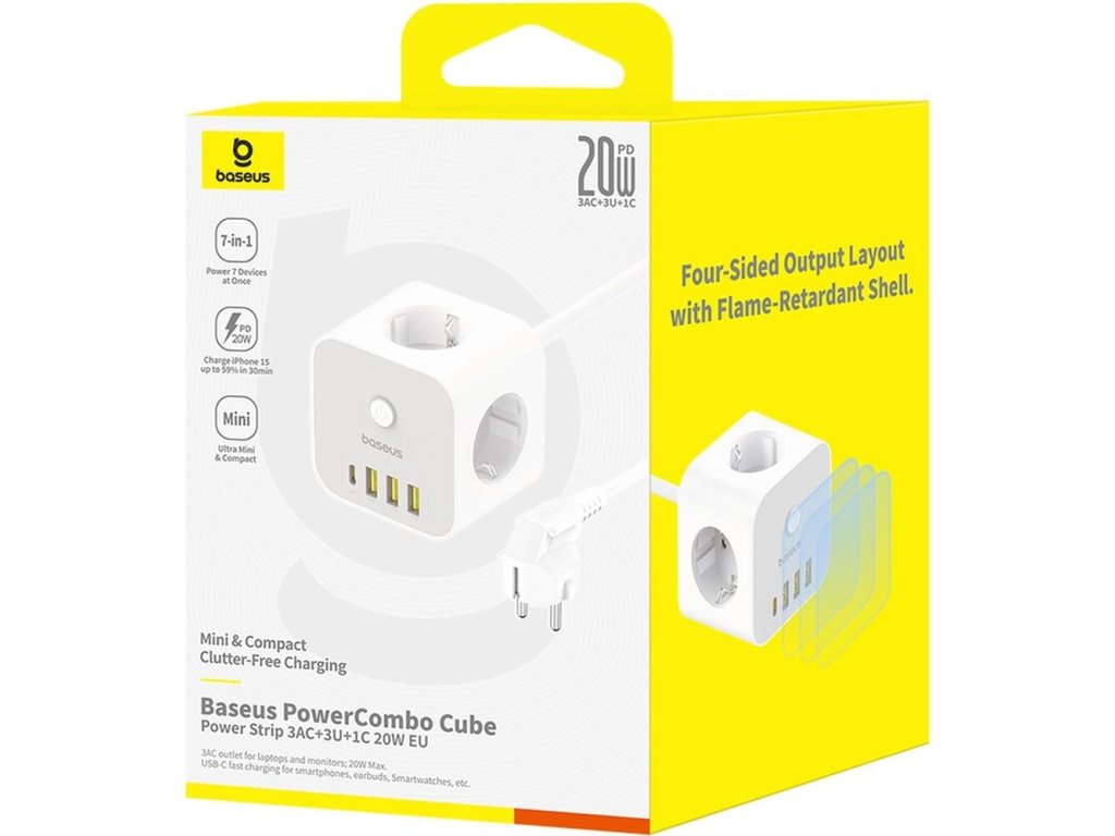 Predlžovací kábel Baseus PowerCombo Cube 3x zásuvka + 3x USB + 1x USB-C 20W 1,5 m biely