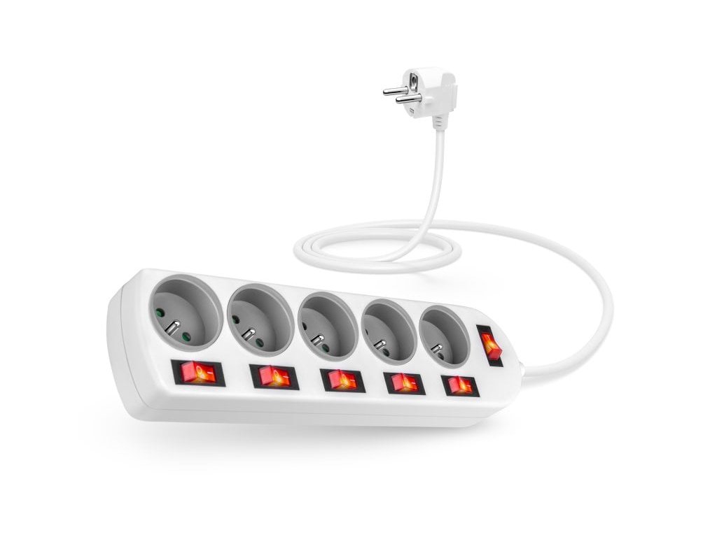 5 PowerSwitch WHITE --- Predlžovací kábel 230 V s vypínačom pre všetky zásuvky, s centrálnym vypínačom a dětskou ochranou. --- Predlžovací kábel 230 V je vybavený hlavným sieťovým vypínačom, ktorý po vypnutí súčasne úplne odpojí všetky pripojené spotrebiče od napájania. Predlžovací kábel má tiež vypínače pre každú zásuvku zvlášť, sami si zvolíte, ktoré zásuvky sa kedy zapnú alebo vypnú bez toho, aby ste museli odpojiť prívodný kábel od spotrebiča. Ďalšou funkciou je dětská ochrana všetkých zásuviek - zásuvky sú prístupné len vtedy, ak sú obe vidlice zasunuté súčasne, takže nemôžete samostatne zasunúť skrutkovač alebo pletacie ihlice. Vďaka otočeniu zásuviek o 45 ° je možné používať aj objemnejšie napájacie adaptéry alebo uhlové zástrčky. --- 5 zásuviek Dĺžka napájacieho kábla 2 m Hlavný sieťový vypínač súčasne úplne odpojí všetky pripojené spotrebiče od napájania (ideálne napríklad pri odchode na dovolenku) Vypínač pre každú zásuvku Detská ochrana pre všetky zásuvky (do zásuviek je možné vstúpiť len vtedy, ak sú súčasne zasunuté obe zástrčky, takže nie je možné samostatne zasunúť napr. uhlom 45°, aby bolo možné pripojiť uhlové zástrčky a väčšie napájacie adaptéry Svetelná indikácia prevádzky integrovaná v hlavnom sieťovom vypínači a vo vypínačoch všetkých zásuviek. Maximálny príkon všetkých spotrebičov: 3680 W Maximálne prúdové zaťaženie: 16 A Vodič: H05VV-F 3Gx1,00 mm2 Farba: biela Hmotnosť výrobku: 430 g --- Obsah balenia: Prodlužovací kabelDodatočné parametre