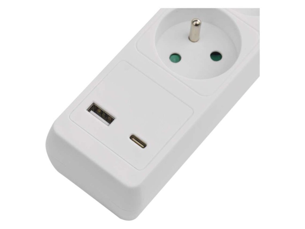 Predĺžovací kábel s vypínačom. 250 V~/16 A max. 3 zásuvky s detskými clonami. USB A+C 3,4 A, max. 17 W. Dĺžka napájacieho kábla 2 m. Vodič H05VV-F3G 1,5 mm2. výhody výrobkuMax. zaťaženie 3 680 W. Farba: biela Ďalšie funkcie: nie Dĺžka: 2 m Detské tienidlá: áno jazyky použitie: - kompatibilita: - krytie: IP20 materiál zásuvky a zástrčky: plast maximálna záťaž: 3 680 W napätie: 250 V~ Upozornenie do mobilnej aplikácie: nie ovládanie Podporované OS: - Prenosová frekvencia: - predajné balenie: 1 ks, závesné protokol: - Prúd: 16 A max. prierez vodiča 1,5 mm2. typ izolácie: PVC Výstup USB: 1× USB-A, 1× USB-C, spolu: 3,4 A - 17 W vodič: H05VV-F3G vypínač napájania: ánoDodatočné parametre