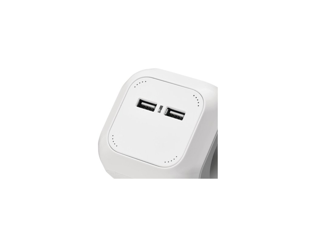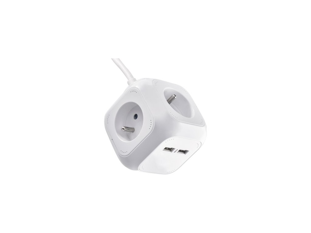 Predlžovací kábel - kocka 1,9 m / 4 zásuvky / biely / PVC / s USB / 1 mm2