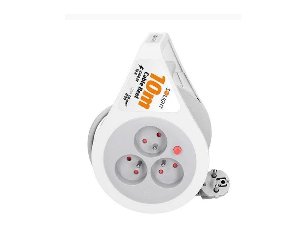 Predlžovací kábel Solight bubon 10 m, 3 zásuvky, sivý kábel, 3x 1,0 mm2