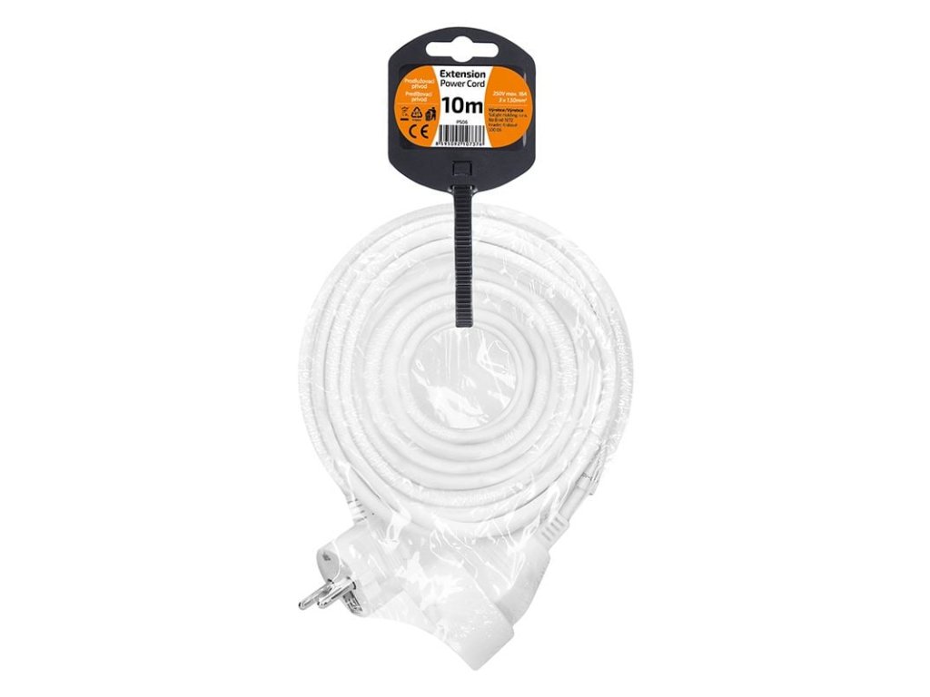 prierez drôtu: 3 x 1,5 mm2 Typ kábla: H05VV-F3 zlomená vidlica farba: biela dĺžka: 10 m 230V/16A, max. 3680WDodatočné parametre