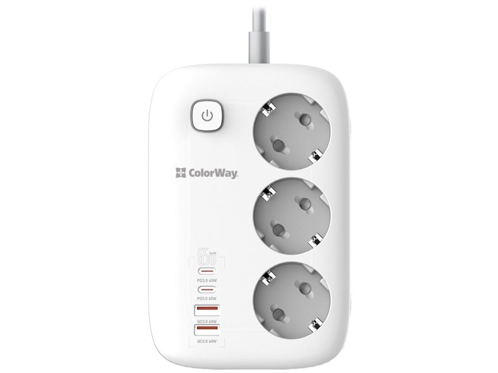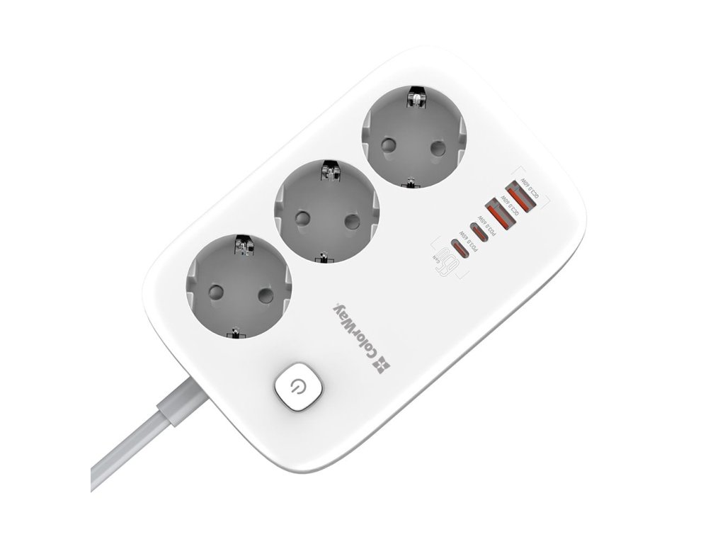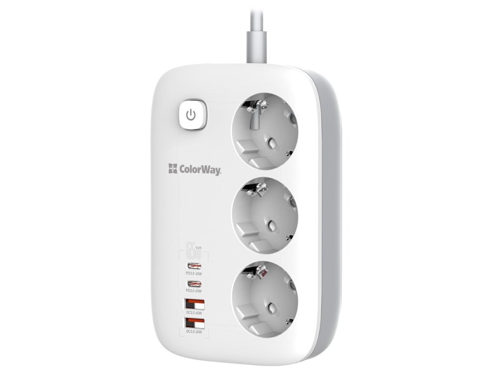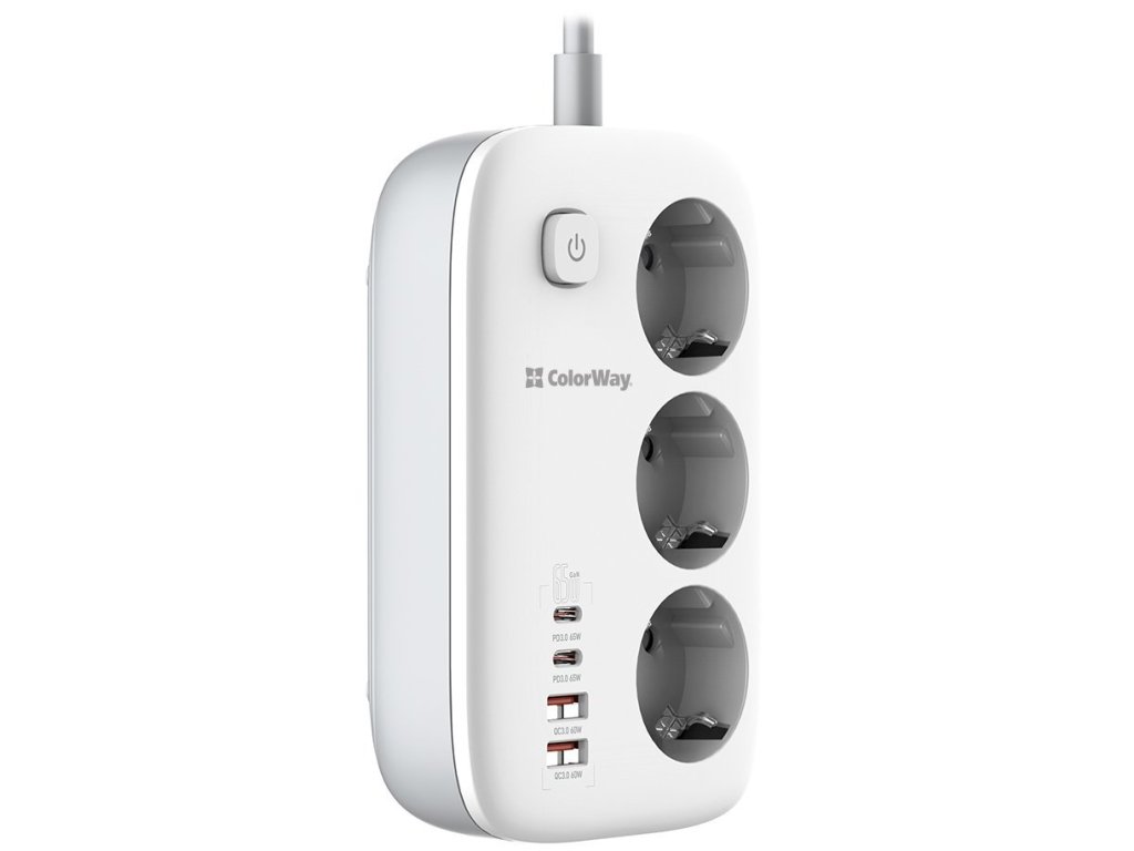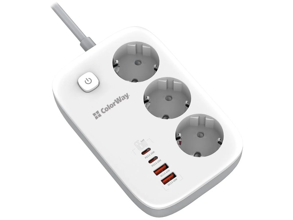 Predlžovací napájací kábel ColorWay/ 3x Schuko/ 2x USB-A 60W/ 2x USB-C 65W/ 2 m kábel