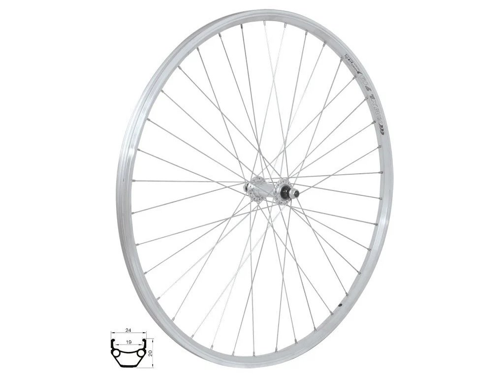 28/29" predné koleso REMERX L719 DRAGON 622x19 Náboj FORCE na priemyselných ložiskách, os s maticou 28", 36 otvorov, bez nitov brúsená strana pre bežné a V-brzdy striborné pozinkované dráty, striebraDodatočné parametre