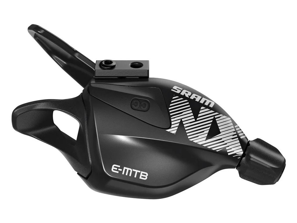 Jednokľuková prehadzovačka SRAM NX Eeagle pre E-MTB Prehadzovačka Eagle™ špecifická pre E-MTB, ktorá umožňuje preradiť na nižší prevodový stupeň len jedným kliknutím (pastorkom). Rovnako ako pri súprave EX1, toto zníženie prevodu znižuje možnosť predčasného opotrebovania a pretrhnutia reťaze. 12 rýchlostí. Kompatibilita: prevodovka 12r Napätie kábla: X-akcia Farba: čierna Dĺžka lana: 2200 mm Kompatibilita s matchmakerom: áno Obal v balení: áno Maximálny posun hore: 1 1 nastavenie spodnej páky: nie Viacpolohová: áno Indikátor prevodového stupňa: nieDodatočné parametre