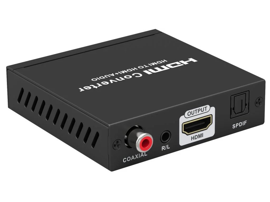 Popis produktu: HDMI2.0 Repeater/Extender 4Kx2K@60Hz s oddelením zvuku, stereo jack, Toslink, RCA Umožňuje oddeliť zvuk zo vstupu HDMI2.0 na analógový/digitálny zvuk, ktorý sa vyvedie samostatne na konektory: stereo jack, digitálny zvuk RCA CINCH alebo digitálny optický výstupný signál, pre rozlíšenie 4Kx2K@60Hz, na vstupe možno použiť 3 m kábel a na výstupe až 5 m kábel AWG26 - Výstupný zvukový signál HDMI do týchto konektorov: stereo jack, digitálny zvukový signál RCA CINCH alebo digitálny optický signál TOSLINK - Podporuje optický/koaxiálny digitálny zvuk rôznymi verziami HDCP 2.2 a HDCP1.4 , pomocou nastaviteľného prepínača - Rozlíšenie až do 4Kx2K pri 60 Hz (4096x2160) alebo 1920x1080 (1080p) Full HD - Podpora HDMI 2.0 - Podpora ovládania ARC - Zariadenie má prepínač S/PDIF - Podporuje funkciu CEC (Consumer Electronics Control) - Podpora HDR - Podpora YUV4:2:0/4:2:2/4:4:4 a RGB 4:4:4 - Podporuje formát zvuku: DTS-HD/Dolby-trueHD/DTS/Dolby-AC3/DSD - Maximálny dátový tok: Prevádzková teplota: (-15 až +55 ° C) - Rozmery (D x Š x V): 80x80x20 (mm) - Hmotnosť: 150 g - Indikácia stavu pomocou dvoch LED diód - Balenie obsahuje napájací zdroj 5V/1A Konektory: Vstup: 1x HDMI samica Výstupy: 1x HDMI, 1x HDMI, 1x HDMI: 1x HDMI samica 1x Toslink digitálny optický zvuk 1x RCA cinch - koaxiálny digitálny zvuk 1x stereo jack - analógový stereo zvukDodatočné parametre