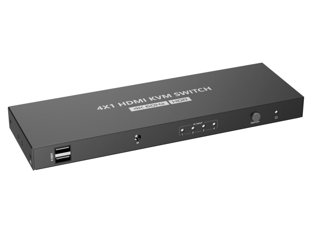 PremiumCord 4K@60Hz HDMI2.0 KVM prepínač 4:1 s diaľkovým ovládaním Prepínač KVM umožňuje pripojiť až 4 servery alebo počítače a jednoducho ich ovládať pomocou monitora HDMI a klávesnice a myši USB. Prepínanie je možné jednoducho pomocou tlačidla, diaľkového ovládania alebo RS232 4xLED indikácia vybraného počítača na prednom paneli. - Štyri servery/PC sa k prepínaču pripájajú pomocou kábla HDMI a USB. - Ovládanie monitora HDMI, klávesnice a myši USB pripojených k prepínaču KVM - Výber servera/PC pomocou tlačidla na prednej strane prepínača, diaľkového ovládania alebo cez RS232 - Indikátory LED zobrazujú vybraný server/PC na prednej strane prepínača - HDMI rola 4Kx2K@60Hz, 1080i,400, 700 720p, - podporuje dátový tok 18 Gb/sa frekvenciu do 600 MHz - podporuje štandard HDMI2.0, HDMI1.4 - Najvyššie rozlišení 4Kx2K@60Hz, FULL HD 1080p/60Hz - Výber servera/PC pomocou tlačidla, diaľkového ovládania alebo RS232 - Podporuje HDR, prepína vysoké rozlíšenie 4K@60Hz alebo FULL HD 1080p - Obsahuje diaľkové ovládanie na pohodlné ovládanie - Podpora 3D obrazu - Dodávaný prídavný adaptér 230V/5V - Pekný černý kovový kryt.Dodatočné parametre