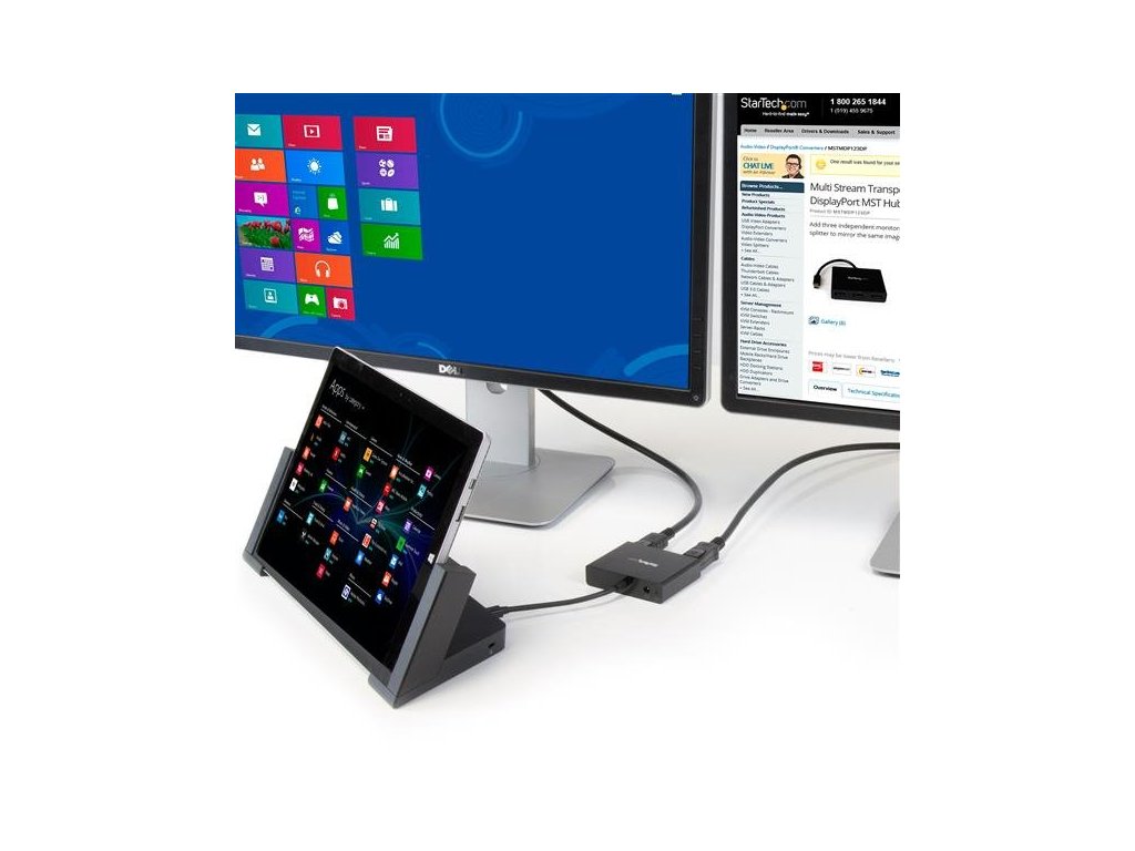 Popis produktu: PremiumCord adaptér DisplayPort - 2x DisplayPort, MST, rozšírenie + zrkadlenie + 2 obrazy, 4K * 2K @ 30Hz Tento adaptér umožňuje prepojiť DisplayPort výstup s dvoma DisplayPort monitormi a na každom zobrazovať iný obraz. Napríklad sa dá využiť na vytvorenie rozšírenej plochy na dvoch monitoroch viď fotografie v prílohe. - Podporuje MST (multi stream transport), prenos dvoch obrazov cez jeden DP konektor - Použiteľné rozlíšenie DisplayPort: FULL HD 1080p, 4K * 2K @ 30Hz - Adaptér MST umožňuje použitie troch módov: 1. Prenos dvoch rôznych obrazov na dva monitory 2. Rozšírenie jedného obrazu na dve obrazovky 3. DisplayPort (Male) - Výstupné konektory: 2x DisplayPort (Female) - Standard: DisplayPort 1.2 - Napájanie z DisplayPort zbernice, na zadnej strane adaptéra je pre prípad nedostatočného napájania z DisplayPort zbernice prídavný micro USB konektor, cez ktorý je možné pripojiť prídavné napájanie z USB 5V. - nepotrebuje SW - puzdro: plastové - farba: čierna - dĺžka kábla: 20cmDodatočné parametre