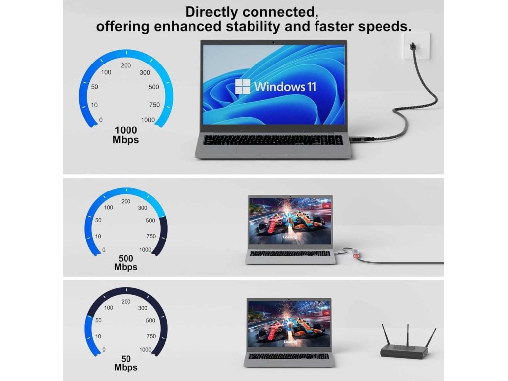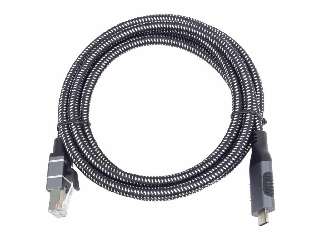 Kabel s integrovaným adaptérom USB-C na LAN RJ45 Ethernet 10/100/1000 MBIT, Fast Ethernet kábel umožňuje pripojiť počítač s portom USB-C k sieti RJ-45 Ethernet. Zariadenie je vhodné napríklad pre notebooky alebo počítače bez sieťovej karty. Síťový kábel USB typu C na Ethernet 10/100/1000 MBIT je konvertorový kábel USB-C na gigabitový Ethernet, ktorý poskytuje sieťovú rýchlosť až 1000 Mb/s cez ethernetový port RJ-45. Je kompatibilný s predchádzajúcimi verziami počítačových systémov so sieťami USB 2.0 a USB 1.xa Ethernetom 10/100/1000 Mb/s. Tento prenosný kábel je ideálny pre stolové počítače alebo ako príslušenstvo pre notebooky. Pripája smerovač, modem alebo sieťový prepínač k portu USB-C notebooku alebo tabletu. - Kabel obsahuje integrovanú sieťovú kartu / gigabitový ethernetový USB adaptér. kábel USB-C 3.1 na RJ45 Ethernet, ktorý rieši problém, keď zariadenie nemá sieťový port. Pripojenie kábla je stabilnejšie. - Šikovný čip zabudovaný do konektora USB nahrazuje doteraz komplikovaný adaptér RJ45 na USB-C. S káblom je pripojenie k sieti Ethernet okamžite k dispozícii a nie sú potrebné žiadne ovládače. - 1.konektor: USB Type-C samec - 2. konektor: RJ-45 port 10/100/1000 MBIT samec - Kabel LAN poskytuje stabilné káblové internetové pripojenie k zariadeniam USB-A bez vlastného sieťového portu - Čipová súprava RTL8153E - Kabel CAT 6 je tienený fóliou Kompatibilný s: IEEE 802.3: 10BASE-T, IEEE 802.3u: 100BASE-TX, IEEE 802.3ab: 1000BASE-T - Podporuje plne duplexný prevádzku s riadením toku IEEE 802.3x - Napájanie sběrnice USB - Vysokokvalitné, robustné kovové zástrčky s ochranou proti ohybu pre extrémne dlhú životnosť - Priemer kábla 6 mm - Odolný textilný plášť kábla USB pôsobí príjemným dojmom a je šetrný k citlivým povrchom - Rýchlosť prenosu dát: 10/100/1000 Mb/s - Farba Dĺžka kábla: 1 m Široká kompatibilita Kompatibilný so systémami Windows, Mac OS, Chrome OS a Linux. Vhodný pre väčšinu stolových počítačov, notebookov, Nintendo Switch, Switch Oled a TV boxov s portom USB A alebo USB C, ako sú MacBook Pro 2015/2017, Mac Mini, ThinkPad, Surface, XPS, Chromebook, Spectre, Zenbook a ďalšie.Dodatočné parametre