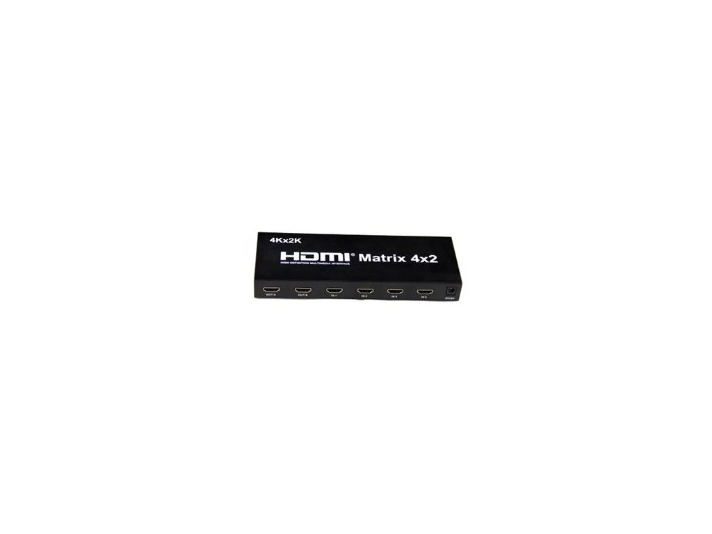 Popis produktu: PremiumCord HDMI maticový prepínač 4:2 so zvukom, rozlíšenie 4Kx2K Umožňuje pripojenie viacerých zdrojov signálu, 4 vstupy HDMI na 2 výstupy HDMI. Umožňuje pripojiť napríklad PC+DVD prehrávač+BlueRay k jednému televízoru a monitoru súčasne. - Podpora 3D obrazu - HDMI 1.4b kompatibilný s HDCP - Maticový dizajn 4 vstupy a 2 výstupy - Umožňuje pripojenie viacerých vstupov (4)/výstupov (2) - Umožňuje štyrom rôznym zdrojom signálu posielať signál nezávisle na dva výstupy súčasne - Zvukový výstup stereo jack 3,5 mm a SPD (1080p) - Kompatibilný s rozlišením 480i, 480p, 720i, 720p, 1080i a 1080p - Kompatibilný s režimami VGA, SVGA, XGA, UXGA - Maximálna šírka pásma (MHz): 340 MHz - Maximálna rozlíšenie: 4K (38402160p@30Hz) Podporovaná farebná hĺbka: 16/24 bitov RGB/YUV, Deep Color, xvColor+ CEC, 4K (2160i/p), Full HD (1080i/p), HD ready (720i/p) - Aktívne zosilňovače na výstupe umožňujúce pripojenie displeja na väčšiu vzdialenosť - Prepínanie pomocou tlačidiel na prednom paneli alebo diaľkového ovládania - Pripájaný diaľkový ovládač na pohodlné ovládanie and Play, nie je potrebný žiadny softvér.Dodatočné parametre