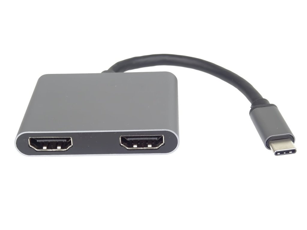 Popis produktu: PremiumCord MST adaptér USB-C na 2x HDMI, USB 3.0, USB-C PD (napájanie), rozlíšenie 4K a FULL HD 1080p a 720p Tento adaptér umožňuje vysokokvalitný prevod obrazu a zvuku z konektora USB-C na dva konektory HDMI pre monitory/televízory/projektory. Funguje ako externá grafická karta s dvoma výstupmi HDMI. Umožňuje rozšíriť vašu existujúcu pracovnú plochu na dva monitory alebo ju zrkadliť na iný monitor. Umožňuje tiež pracovať na dvoch rôznych obrazovkách súčasne. Urobte si pracovný deň zábavnejším a pohodlnejším, pracujte na dvoch obrazovkách súčasne. - Rozlíšenie obrazu až do 4K alebo FULL HD 1080p (maximálne rozlíšenie je 4K@30Hz pri pripojení dvoch monitorov HDMI) - Umožňuje nastaviť dva režimy prevádzky: režim rozšírenia (obrazovka sa rozšíri na dva monitory) a režim zrkadlenia (dva monitory zobrazujú rovnaký obraz) - Vstupný konektor: USB-C samec : samice, USB-C na nabíjanie, USB3.0 na pripojenie pamäte flash alebo iného zariadenia USB - Konektor USB-C na nabíjanie 20 V až 5 A, - Konektor USB3.0 na pripojenie pamäte flash alebo iného zariadenia USB alebo na napájanie cez USB - Adaptér prenáša digitálny obraz a zvuk - Zapojte a hrajte. - Konektor typu C s možnosťou pripojenia v akomkoľvek smere - Farba: strieborná a čierna - Malý kompaktný sprej na odolnom puzdre - Zabalené v kapse s kódom EAN a popisom - Funguje s novými zariadeniami s rozhraním USB 3.1 Gen 2 Type-C podporujúcim alternatívne režimy DisplayPort Macbook 1 Pro2016/2017/2018/2019, MackBook Air 2018/2019, iPad Pro2018, Cromebook, NINTENDO SWITCH, HUAWEI mate30/mate30pro, Samsung S10/S9/Note8/Note9, HP SpecterPavilion, HPDodatočné parametre