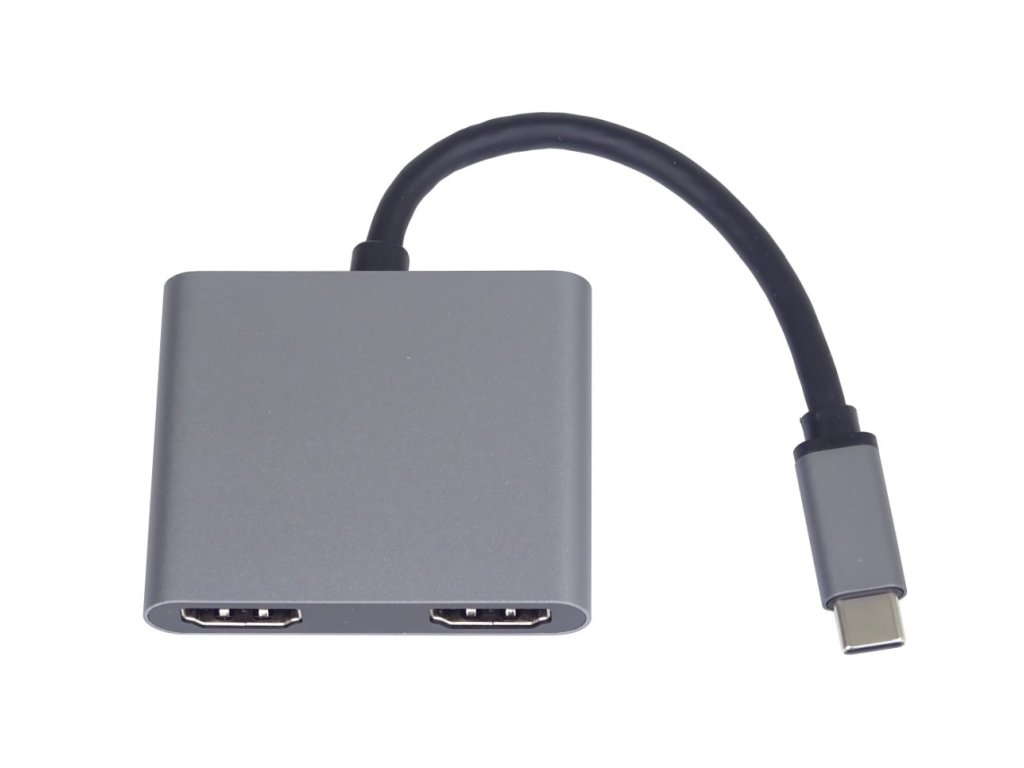 PremiumCord MST adaptér USB-C 2x HDMI, USB3.0, PD, rozlíšenie 4K a FULL HD 1080p ku31hdmi13