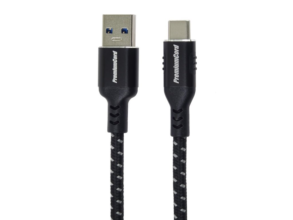 PremiumCord USB-C - USB 3.0 A (USB 3.2 generácie 1, 3A, 5Gbit/s) 3 m bavlnené opletenie a kovové hliníkové konektory - Prvý konektor: USB 3.2 typ C samec - Druhý konektor: USB 3.0 typ A samec - Prenosová rýchlosť: Superrýchlosť 5 Gbit/s 5 Rýchle nabíjanie telefónu (v teste mobilného telefónu bol dosiahnutý preud až 3A) - Podporuje rýchle nabíjanie QC 2.0 / QC 3.0 / QC4+: Qualcomm Quick Charge - Tvarované konektory s kovovými hliníkovými krytkami, - Konektor USB typu C sa dá zasunúť obojstranne, v akejkoľvek pohodlným bavlneným opletením v čiernej a bielej farbe - prierez kábla: 4,2 mm - kovové hliníkové krytky konektorov - farba krytov konektorov: čierna s potlačou - balenie: PVC kapsa so štítkom a EAN kódom - dĺžka kábla: 3 mDodatočné parametre
