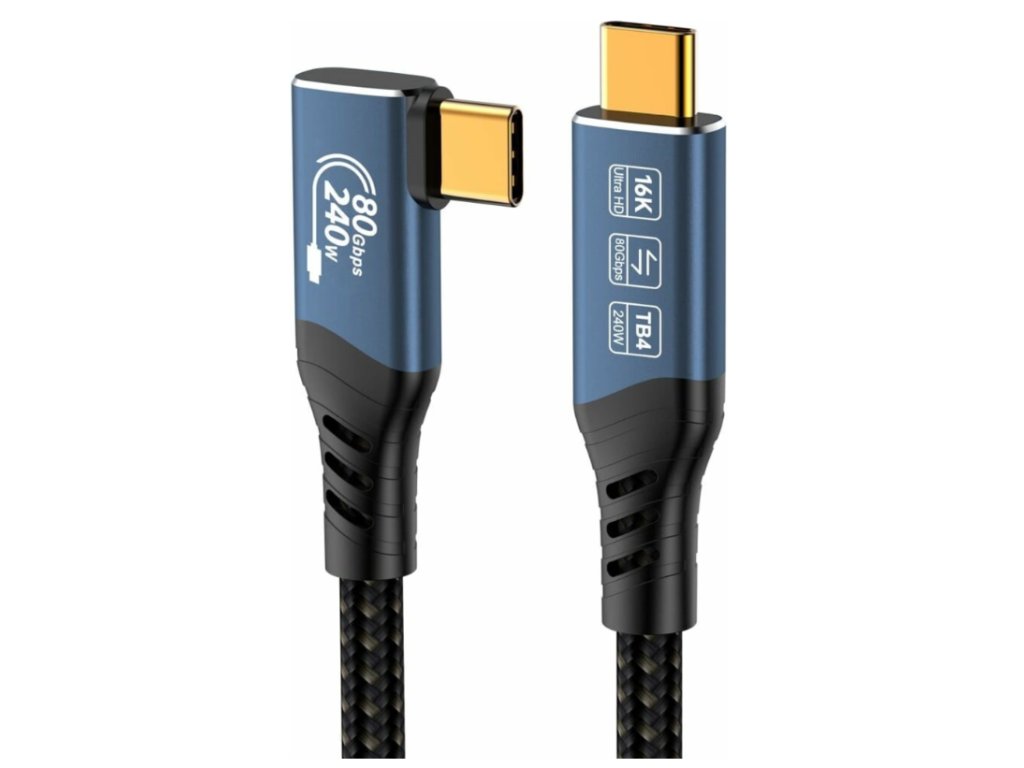 PremiumCord USB4™ Version2.0 80Gbps 16K@60Hz 240W Thunderbolt 3 a 4 kabel zahnutý 90° délka 1,2m Tento kabel USB4™ Version2.0 nabízí extrémně vysokou přenosovou rychlost až 80 Gbit/s, takže je ideální pro datově náročné aplikace. Přeneste videa ve vysokém rozlišení až 16K na monitory a televizory, vychutnejte si ostrý obraz a vynikající zvuk. Umožňuje napájet nebo nabíjet až do výkonu 240W. - Kabel vhodný také na propojení monitoru s rozlišením až 16K@60hz, 8K@60hz nebo 4K@120hz - První konektor: USB typ C samec zahnutý 90° - Druhý konektor: USB typ C samec rovný - Bezkonkurenčních 80 Gbit/s zajišťuje bleskově rychlý přenos dat – kabel USB-C je 16x rychlejší než USB 3.0 a ideální pro pevné disky NVMe, HD filmy, seriály, hudbu a fotografie. - Špičkový výkon díky asymetrickému přenosu dat, podporovanému systémem Windows 11 (sestavení 23615): USB4™ Gen 4 umožňuje rychlost stahování 120 Gbit/s se současnou rychlostí odesílání 40 Gbit/s. - Podporuje rozlišení: 16K/60Hz (15360x8460) Quad UHD, 8K/60Hz (7680x4320) Full UHD, 4K/60Hz (3840x2160) UHD, HDR - Dosud nejflexibilnější USB kabel, umožňuje tunelování dat z DisplayPort™ 2.1 a PCIe™ 4.0 a lze jej připojit přímo k portům s Thunderbolt™ 4 nebo Thunderbolt 3™ - Napájení 48V / 5A ( Napájení PD3.1, výkon napájení až 240W ) - Podporuje rychlonabíjení USB Power Delivery PD 2.0 / PD 3.0 , 240W (48V/5A) - Podporuje rychlonabíjení QC 2.0 / QC 3.0 / QC4+: Qualcomm Quick Charge - Rozlišení videa 16K@60Hz, až 80Gbps (podporuje DisplayPort Alt Mode 2.0) - Podporuje HDR10 a je ideální pro streamování HD videa na externí monitory, televizory nebo projektory, např. z chytrých telefonů, notebooků, tabletů a dalších hostitelských zařízení - USB4™ je kompatibilní s high-end herními komponenty, např. Razer Blade 18, Corsair Voyager, Apple Studio Display nebo procesory AMD Ryzen (Zen 3+, Zen 5) - Zalévané konektory v hliníkovém pozdře zaručují dokonalou pevnost a stabilitu - Chipset: EJ903C/U - E-Marker pro USB-C kabely - Koaxiální měděné vnitřní vodiče umožňují vysoký datový přenos - Materiál pláště TPE, který kombinuje vlastnosti gumy a PVC a vyniká ohebností a velkou pevností - Trojité stínění - Kabel potažen jemným bavlněným potahem - Barva kabelu: černá - Hliníkové konektory barvy: modrá s potiskem - Balení PVC sáček s etiketou a EAN kódem - Délka: 1,2mDodatočné parametre
