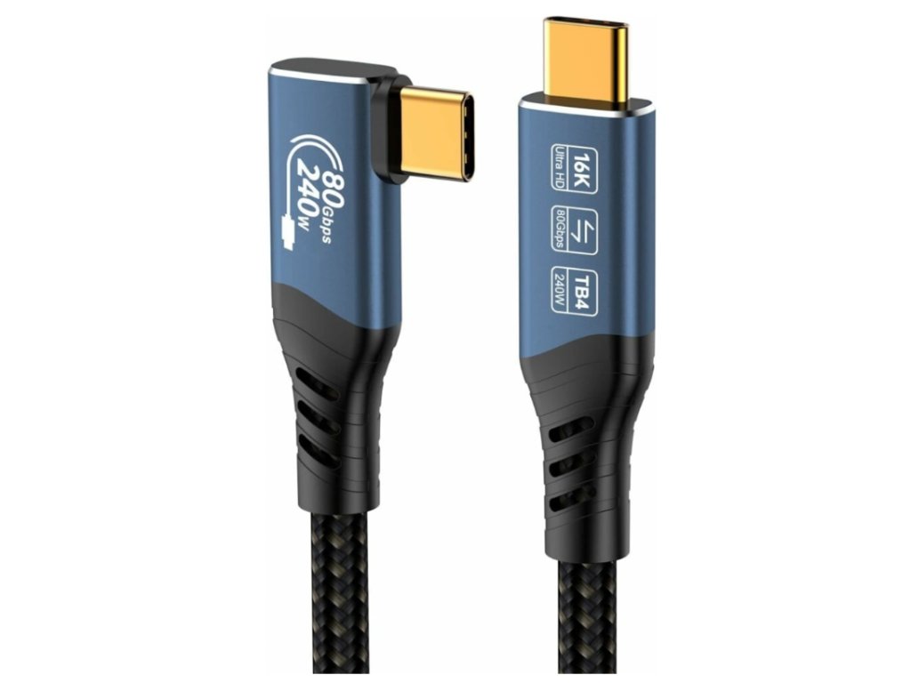PremiumCord USB4™ Version2.0 80Gbps 16K@60Hz 240W Thunderbolt 3 a 4 kabel zahnutý 90° délka 1,5m Tento kabel USB4™ Version2.0 nabízí extrémně vysokou přenosovou rychlost až 80 Gbit/s, takže je ideální pro datově náročné aplikace. Přeneste videa ve vysokém rozlišení až 16K na monitory a televizory, vychutnejte si ostrý obraz a vynikající zvuk. Umožňuje napájet nebo nabíjet až do výkonu 240W. - Kabel vhodný také na propojení monitoru s rozlišením až 16K@60hz, 8K@60hz nebo 4K@120hz - První konektor: USB typ C samec zahnutý 90° - Druhý konektor: USB typ C samec rovný - Bezkonkurenčních 80 Gbit/s zajišťuje bleskově rychlý přenos dat – kabel USB-C je 16x rychlejší než USB 3.0 a ideální pro pevné disky NVMe, HD filmy, seriály, hudbu a fotografie. - Špičkový výkon díky asymetrickému přenosu dat, podporovanému systémem Windows 11 (sestavení 23615): USB4™ Gen 4 umožňuje rychlost stahování 120 Gbit/s se současnou rychlostí odesílání 40 Gbit/s. - Podporuje rozlišení: 16K/60Hz (15360x8460) Quad UHD, 8K/60Hz (7680x4320) Full UHD, 4K/60Hz (3840x2160) UHD, HDR - Dosud nejflexibilnější USB kabel, umožňuje tunelování dat z DisplayPort™ 2.1 a PCIe™ 4.0 a lze jej připojit přímo k portům s Thunderbolt™ 4 nebo Thunderbolt 3™ - Napájení 48V / 5A ( Napájení PD3.1, výkon napájení až 240W ) - Podporuje rychlonabíjení USB Power Delivery PD 2.0 / PD 3.0 , 240W (48V/5A) - Podporuje rychlonabíjení QC 2.0 / QC 3.0 / QC4+: Qualcomm Quick Charge - Rozlišení videa 16K@60Hz, až 80Gbps (podporuje DisplayPort Alt Mode 2.0) - Podporuje HDR10 a je ideální pro streamování HD videa na externí monitory, televizory nebo projektory, např. z chytrých telefonů, notebooků, tabletů a dalších hostitelských zařízení - USB4™ je kompatibilní s high-end herními komponenty, např. Razer Blade 18, Corsair Voyager, Apple Studio Display nebo procesory AMD Ryzen (Zen 3+, Zen 5) - Zalévané konektory v hliníkovém pozdře zaručují dokonalou pevnost a stabilitu - Chipset: EJ903C/U - E-Marker pro USB-C kabely - Koaxiální měděné vnitřní vodiče umožňují vysoký datový přenos - Materiál pláště TPE, který kombinuje vlastnosti gumy a PVC a vyniká ohebností a velkou pevností - Trojité stínění - Kabel potažen jemným bavlněným potahem - Barva kabelu: černá - Hliníkové konektory barvy: modrá s potiskem - Balení PVC sáček s etiketou a EAN kódem - Délka: 1,5mDodatočné parametre