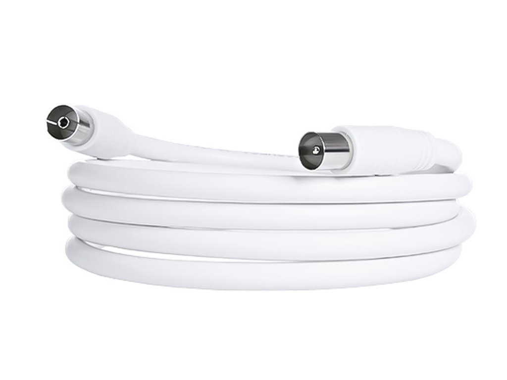 TV kábel M/F 75 Ohm - Koaxiálny kábel 3C2V - Účastnícky kábel na pripojenie televízora k anténnej zásuvke - Konektory IEC samec-samica - Vysokokvalitné tienenie - Dĺžka 5 mDodatočné parametre