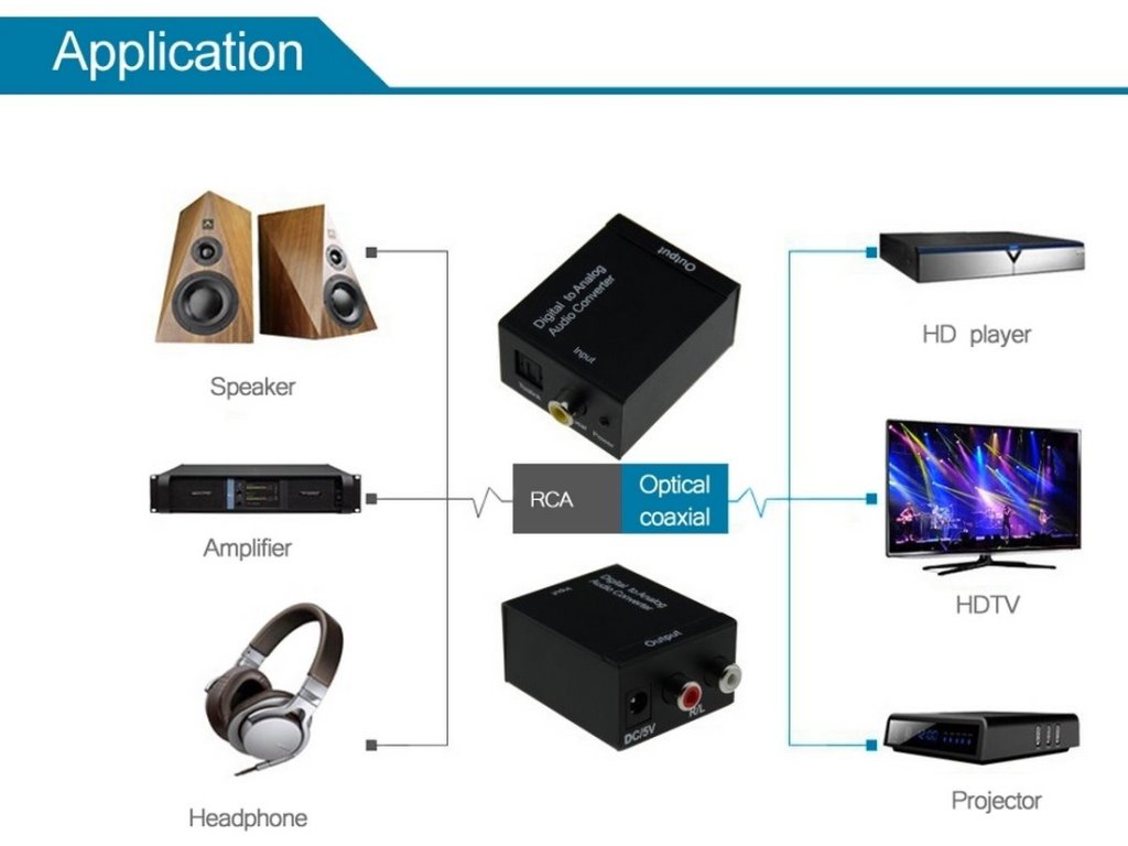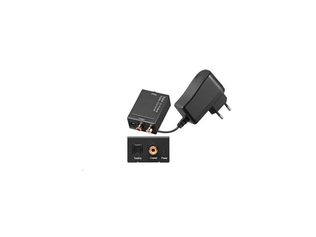 Prevodník z digitálneho SPDIF a optického Toslinku na 2x CINCH - Prevádza digitálny signál (koaxiálny SPDIF) alebo optický signál (Toslink) na analógový stereo signál 2x CINCH - Vstupy: 1 x koaxiálny (SPDIF), 1 x Toslink - Výstupy: 2 x jack - Podporuje vzorkovacie frekvencie: 32, 44,1, 48 a 96 KHz - 24-bitový vstupný kanál S/PDIF Ľ/R - Balenie obsahuje napájací zdroj a príručku - Rozmery: 5,1 x 2,6 x 4,1 cm - Kompaktné rozmery - Ideálne pre zosilňovače,Dodatočné parametre