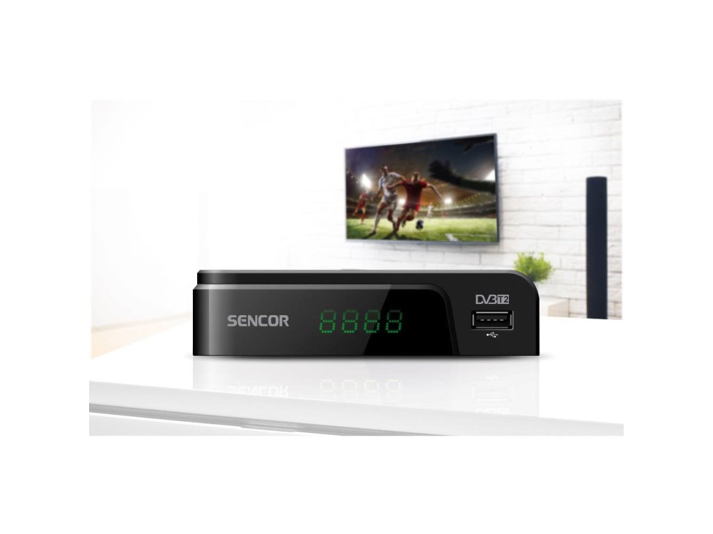 PRIJÍMAČ DVB-T SENCOR SDB 524T Príjem signálu: DVB-T2 HEVC/H.265 (1080p pri 60 FPS) (1080p) s podporou CEC Konektor SCART Port USB Podporované formáty USB: Video: V TOMTO PRÍPADE JE MOŽNÉ POUŽÍVAŤ NÁSLEDUJÚCE FORMÁTY: AVI, TS, TRP, MP4, MKV, MOV Zvuk: MPEG-4, MPEG-4, MPEG-4, MPEG MP3 Obrázky: jpg, jpeg USB - nahrávanie, funkcia Timeshift, prehrávanie multimédií Sedemdenný EPG (elektronický programový sprievodca) Teletext Zoznam televíznych a rozhlasových stanic Zoznam obľúbených kanálov Rodičovský zámok Nastavenie pomeru strán Časovač zobrazenia (až 8 nahrávok), časovač automatického vypnutia Podpora formátov 5V/2A Spotreba energie: max. 10 W Spotreba energie v pohotovostnom režime: max. 0,5 W Rozmery: 120 x 30 x 86 mmDodatočné parametre