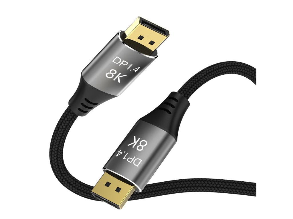 Pripojovací kábel PremiumCord DisplayPort 1.4 32,4 Gbit/s, rozlíšenie 8K, kovové a pozlátené konektory, 1 m. - DisplayPort 1.4 zvyšuje maximálnu rýchlosť prenosu dát o 50% oproti DisplayPort 1.2 na 32,4 Gbit/s. hĺbke - 4K (3840×2160) pri 144 Hz a 60 Hz a 24-bitovej farebnej hĺbke - 2K (2560×1440) pri 240 Hz a 165 Hz - FULL HD 1080p (1920 × 1020) HDCP1.4 - Podporuje 3D a EDID - Kabel podporuje FreeSync a G-Sync, Dynamic HDR, ako aj 32 zvukových kanálov a mnoho populárnych zvukových formátov, ako napríklad DTS-HD Master Audio - DisplayPort verzia 1.4 - Maximálny prenos dát: 32,4 Gb/s - Podporovaná hĺbka farieb: ( 4, 4 Konektory: DisplayPort (20pin) samec DisplayPort (20pin) samec - Vďaka špičkovému dizajnu je kábel vhodný na všetky druhy inštalácií. - Flexibilný prémiový kábel s tenkými kovovými konektormi, ochranou proti ohnutiu a farebne zladeným textilným káblom. - Pletený textilný plášť kábla monitora je príjemný na dotyk a šetrný k citlivým povrchom. bavlneným opletením: farba černo-sivá - Farba konektora: vesmírne sivá - Balené v PVC kapse s EAN kódom a popisom - Dĺžka kábla: 1 mDodatočné parametre