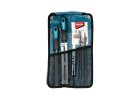 Viacdielna súprava na ostrenie pílových reťazí v praktickom kufríku, vhodná pre pílové reťaze s rozstupom 1/4"-3/8" (6,35-9,32 mm) a šírkou vedenia 1,1-1,3 mm.