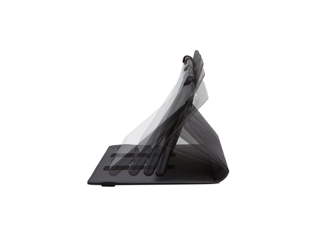 Bezpečné uchytenie a nastaviteľné polohovanie pre širokú škálu 7" tabletov. Univerzálne puzdro s otvorom v tvare knihy pre väčšinu 7" tabletov. Tablet bezpečne drží na mieste pomocou pružných silikónových pútok a pevných plastových klipov. Jemne nastaviteľné polohovanie optimalizuje sklon tabletu pre akékoľvek použitie. Priamy, ničím nerušený prístup ku konektorom a ovládacím prvkom. Pružný zabezpečovací popruh. Farba: modrá Materiál: polyester Vonkajšie rozmery: 13 x 1,7 x 20,5 cm Vnútorné rozmery: 19,6 x 11,7 x 1,0 cm Hmotnosť: 0,11 kgDodatočné parametre