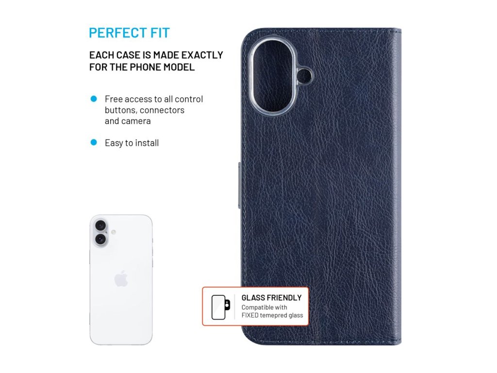 Puzdro typu kniha FIXED Opus pre Apple iPhone 16 Plus, modré