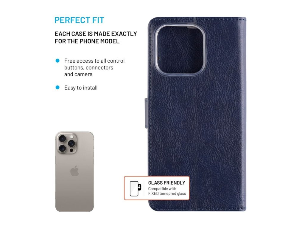Puzdro typu kniha FIXED Opus pre Apple iPhone 16 Pro Max, modré