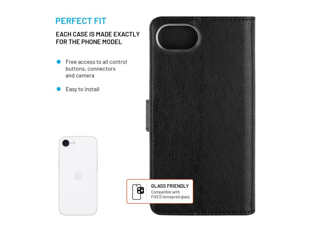 Puzdro typu kniha FIXED Opus pre Apple iPhone 16e, čierne