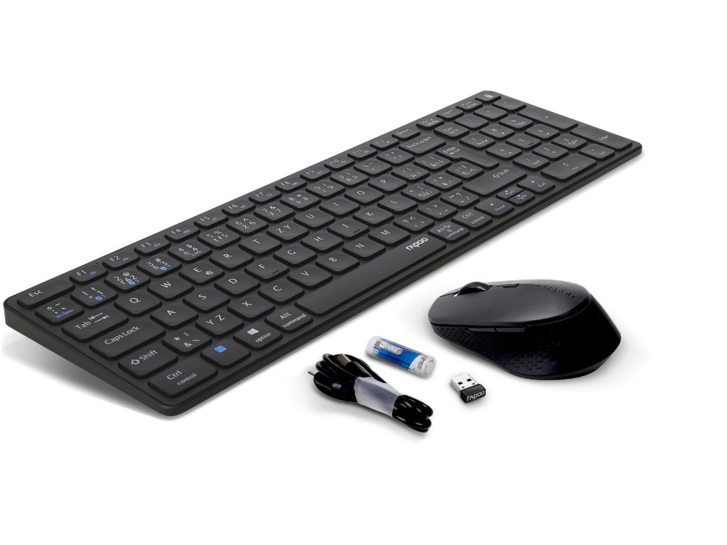 Bezdrôtová viacrežimová klávesnica so zabudovanou bateriou a tichou myšou M300: 9700M Táto ultratenká stolová súprava využíva prvotriedne materiály v elegantnom a kompaktnom dizajne, v ktorom napriek tomu nechýba numerický blok. Vďaka pevnej hliníkovej základni je telo klávesnice odolné a robustné. Zároveň dodáva štýlový nádych každej pracovnej stanici. Klávesnica E9700M nie je pokročilá len dizajnom, ale aj funkčnosťou. Je vybavená technológiou viacrežimového pripojenia od spoločnosti Rapoo - prostredníctvom spolehlivého 2,4 GHz bezdrôtového vysílača, Bluetooth 3.0 a 5.0 -, ktorá umožňuje súčasné pripojenie a prepínanie viacerých zariadení (s automatickým párovaním). Myš v tejto súprave je vybavená vysoko výkonným optickým snímačom, plne nastaviteľným v rozsahu 600 až 1600 DPI a tichými spínačmi. Klávesnica je navyše vybavená ekologickou nabíjateľnou bateriou, takže si môžete naplno užívať slobodu bez káblov. Bezdrôtové pripojenie vo viacerých režimoch. Bezdrôtové pripojenie bez rušenia: Inteligentný prepínač režimov Bluetooth 3.0, 5.0 a 2,4 GHz zabezpečuje stabilné pripojenie až do vzdialenosti 10 metrov v okruhu 360 °. Zároveň môžete klávesnicu používať bez potreby ďalšej zásuvky USB alebo iného prijímača. Okamžité prepínanie medzi pripojenými zariadeniami jedným dotykom (automatické párovanie). Pripojenie ku všetkým zariadeniam: 9700M automaticky spáruje pripojené zariadenia. Dokáže pracovať s viacerými zariadeniami súčasne a jednoducho medzi nimi prepínať stlačením jediného tlačidla. Zjednodušuje prácu s viacerými zariadeniami a splňuje požiadavky na multitasking. Mimoriadne tenká konštrukcia z hliníkovej zliatiny Tenký, odolný, kompaktný a vrátane numerickej klávesnice: ultratenký dizajn upúta pozornosť, navyše eloxovaný hliníkový kryt zaručuje stabilitu a odolnosť. Ekologická nabíjateľná batéria Už žiadne výmeny baterií: vďaka zabudovanej ekologickej lítiovej baterii si môžete užívať slobodu bez káblov a výmeny baterií. Nastaviteľný snímač s rozlišením 1600 DPI Vychutnajte si úplnú kontrolu: vďaka nastaviteľnej hodnote presnosti DPI snímača už nemusíte váhať. Vďaka možnosti nastavenia citlivosti od 600 do 1600 DPI plne vyhovie vašim potrebám. Technické údaje Bezdrôtové pripojenie vo viacerých režimoch: 2,4 GHz, Bluetooth 3.0, Bluetooth 5.0 Ultratenký kompaktný dizajn s numerickou klávesnicou Puzdro zo slitiny hliníka 99 kláves s nôžnicovým mechanizmom 12 mesiacov (pre myš) Ekologická dobíjacia batéria v klávesnici Vypínač napájania Nano USB prijímač Úložný priestor pre prijímač Nano USB Obsah balenia Bezdrôtová klávesnica, bezdrôtová myš, prijímač nano USB, 1 ceruzková batéria AA (vložená), nabíjací kábel USB/XP/V1/ Opera1/ Opera1 OS X 10.4 a novější, zásuvka USB Rozmery produktu Rozmery klávesnice: 362 × 115 × 13 mm Hmotnosť klávesnice: 445 g rozmery myši: 104 × 66 × 37 mm hmotnosť myši: 83 gDodatočné parametre