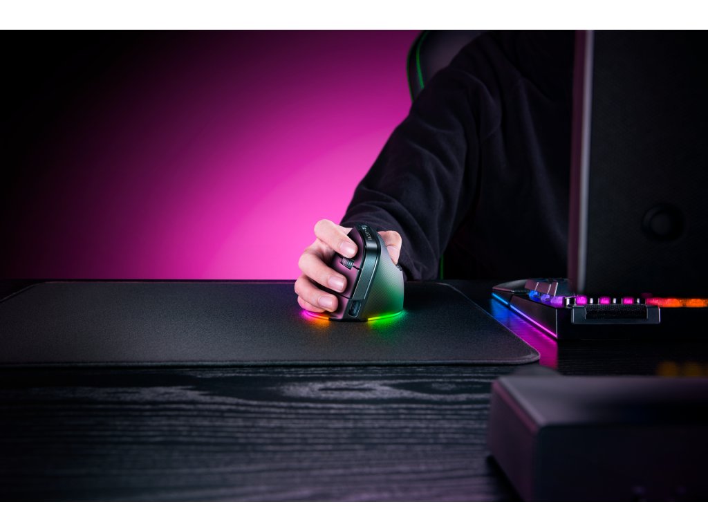 Zvýšte svoje pohodlí a výkon s našou prvou bezdrôtovou vertikálnou ergonomickou myšou. Tvarovaná tak, aby sa prispôsobila prirodzenej odpočinkovej polohe vašej ruky. Buďte maximálne produktívni vďaka skratkám nástrojov s umelou inteligenciou, 5-smernému pripojeniu viacerých zariadení a ďalším funkciám. Tvarovaná pre prirodzené uchopenie pri podaní ruky, šikmý dizajn podporuje najpohodlnejšiu polohu ruky pri dlhšom používaní, zatiaľ čo základňová opierka vyvýši vaše zápästie, aby sa minimalizovalo trénie pri pohybe. Napájanie pomocou účinnej batérie s dlhou výdržou, až 6 mesiacov bez prerušenia. Získajte 3 pracovné dni používania s iba 5 minútami nabíjania prostredníctvom dodaného nabíjacieho kábla USB-C. Maximalizujte svoju efektivitu a ovládajte celú zostavu pomocou jedinej myši - pripojte až 5 zariadení v režime HyperSpeed Wireless, Bluetooth (3 hostitelia) alebo káblovom režime. Povoľte reaktívne oznámenia RGB pomocou zásuvných modulov dostupných na Chroma Workshop. Prispôsobte si každú zónu zo 16,8 milióna farieb a zažite väčšie pohltenie s viac ako 300 integrovanými hrami. Vychutnajte si bezproblémové zobrazenie aj na skle vďaka optickému snímaču Focus Pro 30K, ktorý ponúka 99,8% presnosť rozlíšenia a je podporený citlivými mechanickými spínačmi so životnosťou 60 miliónov kliknutí. 30 000 DPI, 550 IPS, optický snímač 40G 7 programovateľných tlačidiel. Životnosť batérie až 6 mesiacov (pri používaní 4 hodiny 5 dní v týždni na BLE, s vypnutým RGB) Hmotnosť: 150 g Životnosť tlačidiel: 60 miliónov kliknutí Pripojenie: 2,4G/BLE/USB-C Konektivita s viacerými hostiteľmi: 5 hostiteľov príkazov AIDodatočné parametre
