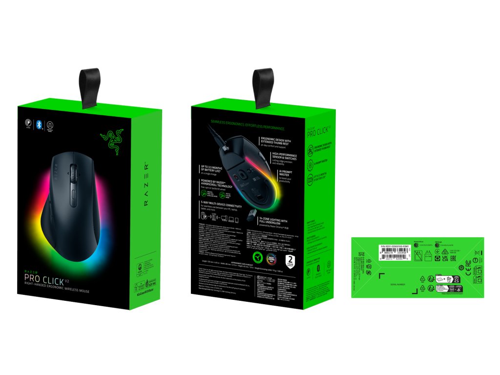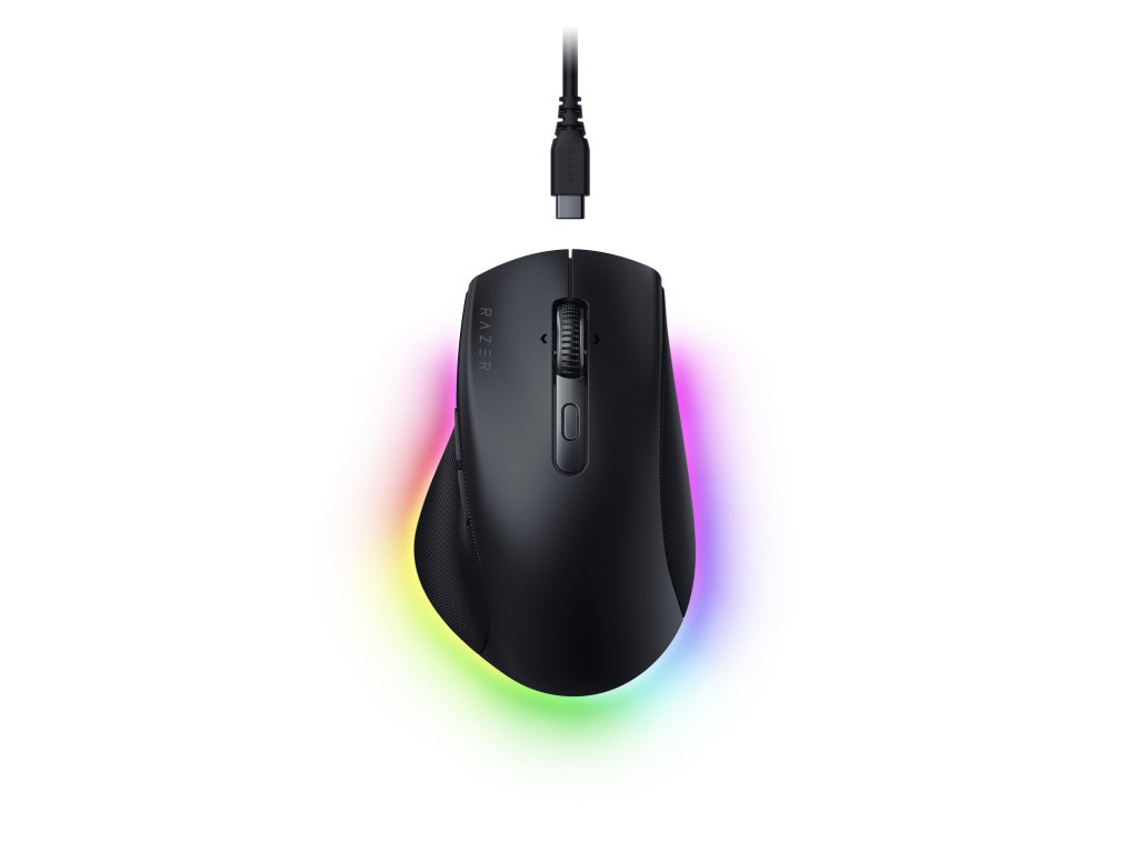 Pomocou bezdrôtovej ergonomickej myši môžete ľahko prejsť z práce na zábavu. Zvýšte produktivitu pomocou skratiek s umelou inteligenciou a vychutnajte si vysoko presné hranie s dokonalým univerzálnym nástrojom pre vašu pracovnú stanicu a hernú konzolu. Užite si dlhé hodiny hrania a práce bez námahy. Ľahko prechádzajte medzi jednotlivými činnosťami vďaka dokonale tvarovanému ergonomickému tvaru so širšou opierkou na palec pre lepšie držanie zápästia. Rolujte text, vytvárajte koncepty e-mailov a ďalšie funkcie jediným kliknutím. Odomknite výkonné zkratky pomocou Razer Synapse 4, uložte ich do myši a okamžite zefektívnite svoj pracovný postup pre nástroje umelej inteligencie. Odomknite reatívne osvetlenie RGB pomocou aplikácie Chroma Workshop. Prispôsobte si 16,8 milióna farieb v 14 zónach podsvietenia a vychutnajte si lepšie pohltenie s viac ako 300 podporovanými hrami. Dizajn. Pripojenie: Razer HyperSpeed Wireless (2,4 GHz), Bluetooth - až 3 hostitelia, káblové USB-C Výdrž batérie: Až 3,5 mesiaca 14-zónové RGB podsvietenie Senzor: Optický senzor Razer Focus Pro Maximálna citlivosť (DPI): 30000 Maximálna rýchlosť (G): 40 Programovateľné tlačidlá: 9 Typ spínača: 1: Mechanický spínač Životnosť spínača: 60 miliónov kliknutí Integrované pamäťové profily: 1 Nožičky myši: 100% PTFE Kabel: 1,2 m kábel USB-A na USB-C na nabíjanie a káblové použitie Naklápacie kolie 126,0 mm Šírka: 80,0 mm Výška: 46,0 mm Približná hmotnosť: 110 gDodatočné parametre
