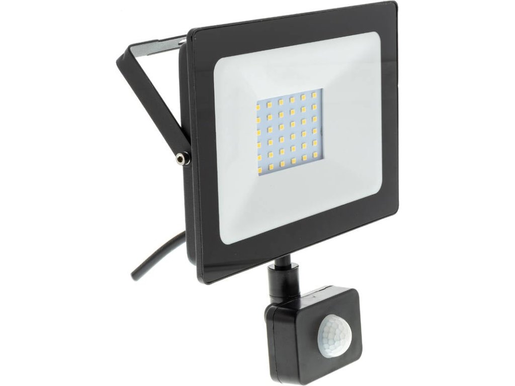 LED reflektor Celohliníkové telo - štíhly dizajn Výkon: 30 W Napájanie: 230 V AC Ra: >80 Svetelný tok: 2400 lm CCT: 4000K - studená biela Uhol vyžarovania: 120° Dosah snímača: max. 10 mC 0 - 2 190 x 47 mm Stupeň krytia IP65 30 W = 200 W (pre halogénovú žiarovku) Senzor PIRDodatočné parametre