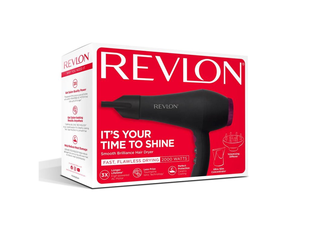 Srdcom sušiča vlasov Revlon Smooth Brilliance je výkonný 2000W AC motor, ktorý umožňuje rýchlu a presnú úpravu krátkych, dlhých a polodlhých vlasov. Môžete si vybrať z dvoch nastavení rýchlosti a troch teplôt, aby ste vlasom počas sušenia poskytli optimálnu starostlivosť a hmotnosť.