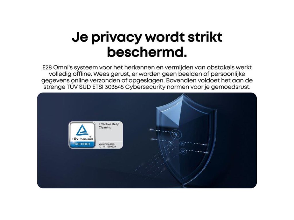 HydroJet: model E28 je vybavený dvojitým zásobníkom na vodu a dvojitou strukturou drhnutia, takže mop čistí v reálnom čase a zostáva svieži počas celého procesu čistenia. Prenosný hĺbkový čistič FlexiOne: Prvý odnímateľný prenosný hĺbkový čistič v odvetví - integrovaný do stanice Omni Station, ktorý si poradí s každým neporiadkom od kobercov až po schody a iné textilné povrchy. Turbo sánia 20 000 Pa: E28 zabezpečuje profesionálne hĺbkové čistenie kobercov a podlah. Účinne odstráni aj ten najhlbší prach a vlasy a zanechá váš domov bez skvrn. Kartáče DuoSpiral Detangle: Kartáče DuoSpiral zabraňujú zamotávaniu vlasov a znižujú frekvenciu údržby, čím zabezpečujú bezproblémové čistenie. CornerRover Arm: poskytuje 100% pokrytie okrajov pre bezproblémové čistenie. Stanica All-in-One: Vďaka samočisteniu, sušeniu horúcim vzduchom, automatickému dávkovaniu pracieho prostriedku, zberu odpadovej vody a samočinnému plneniu si môžete užívať voľný čas.Dodatočné parametre
