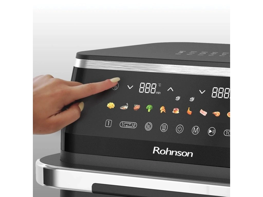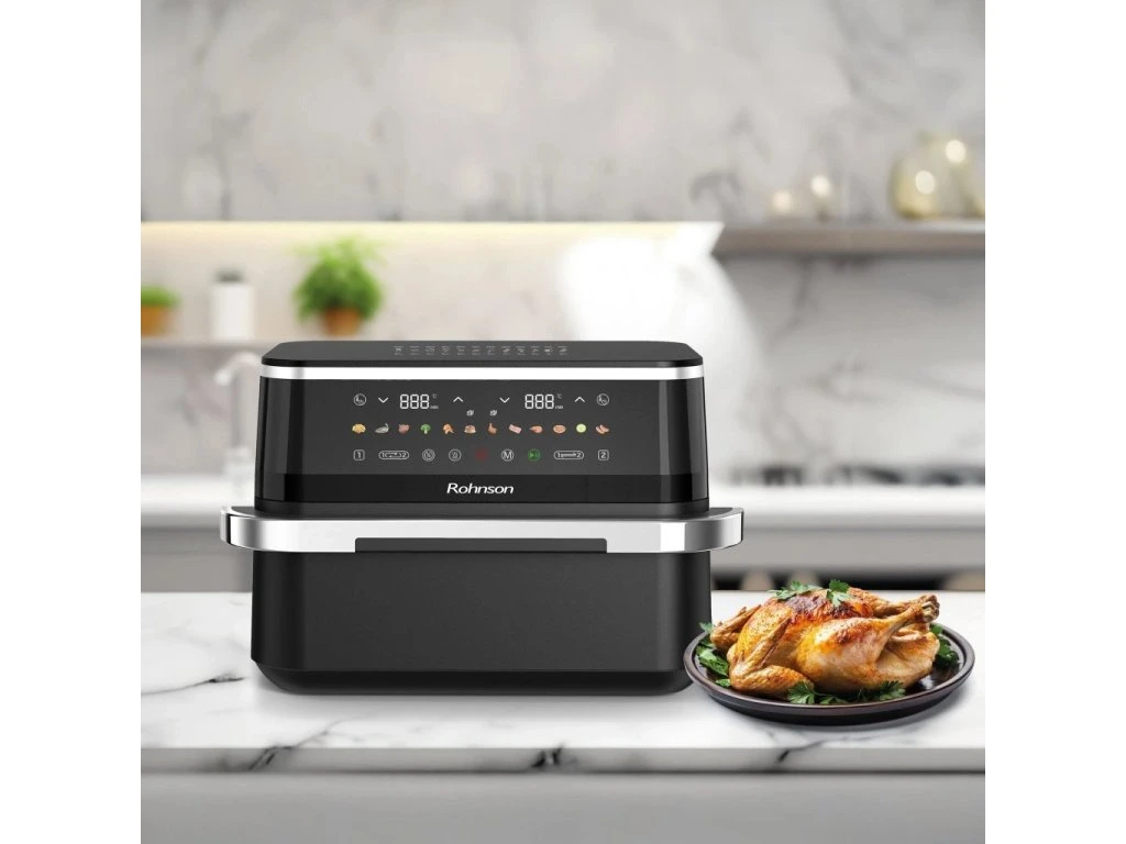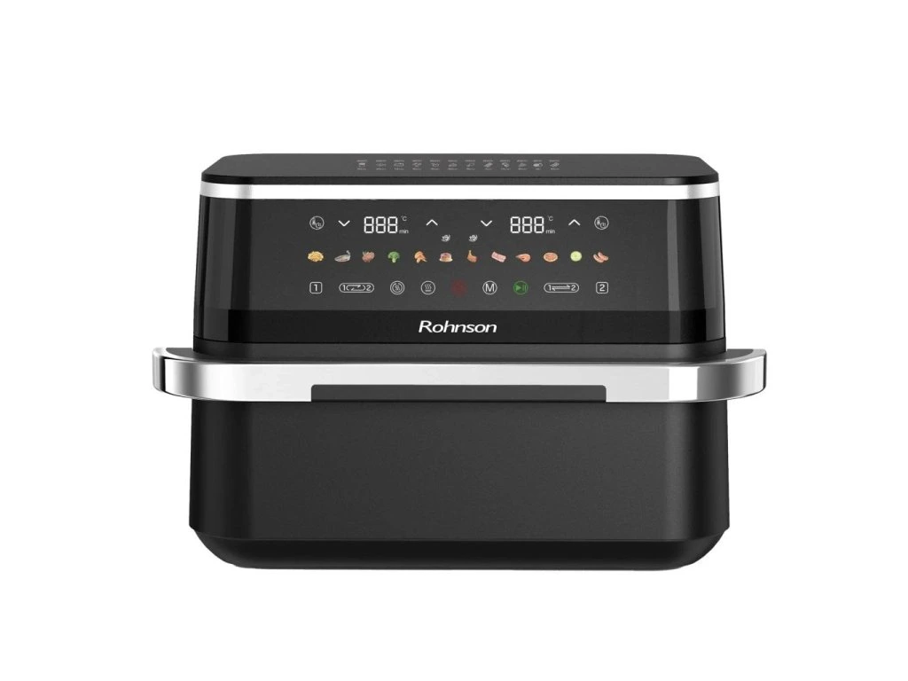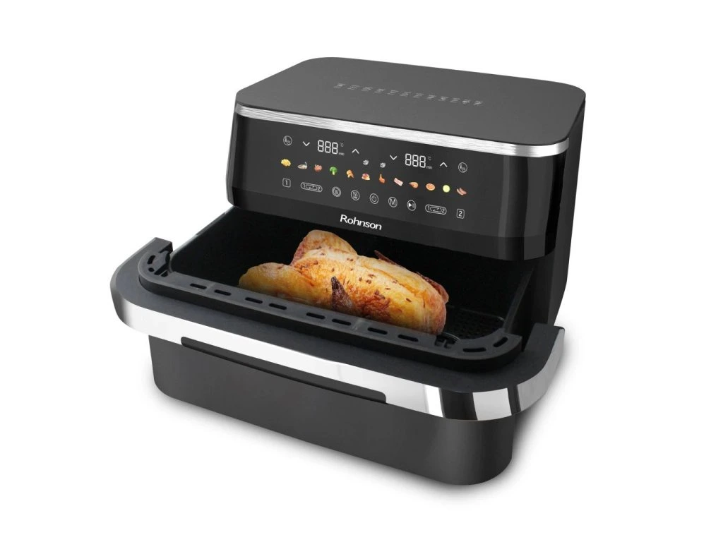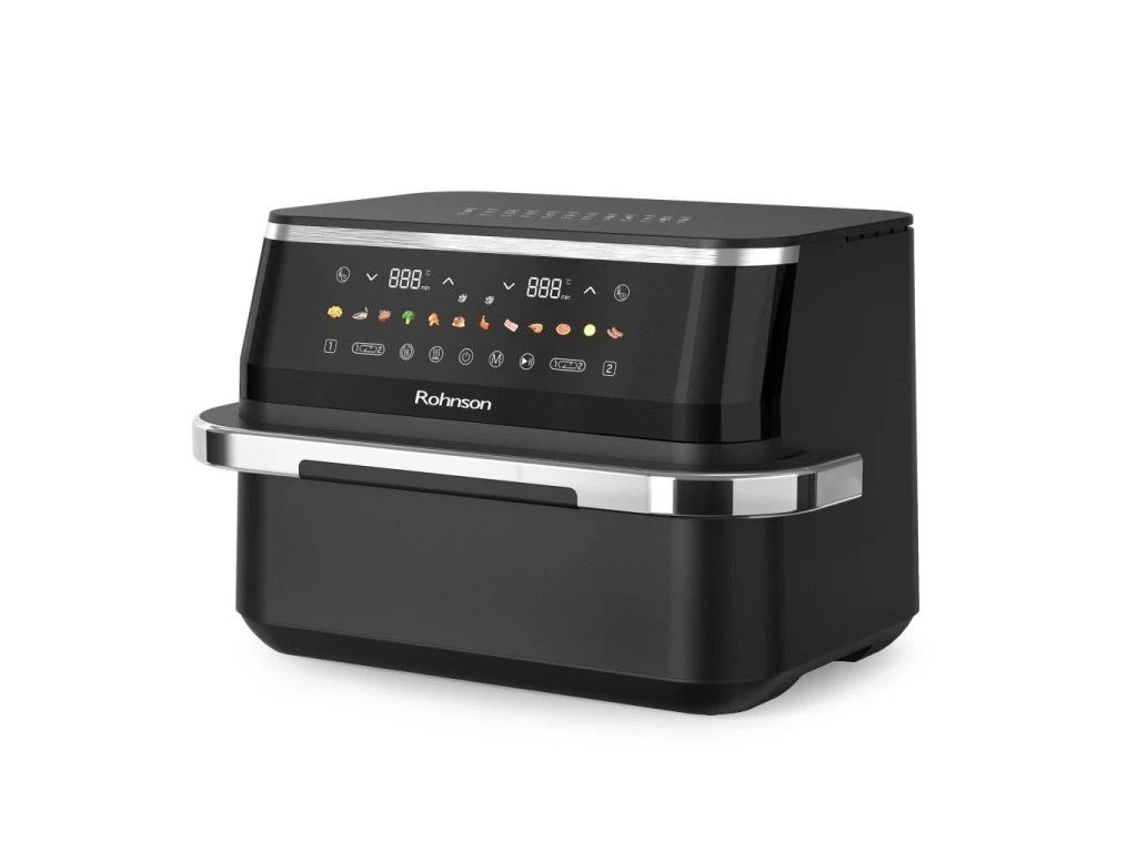 Teplovzdušná fritéza 2 v 1 s dvojzónovým košomIdeálna na prípravu 2 rôznych potravín súčasne