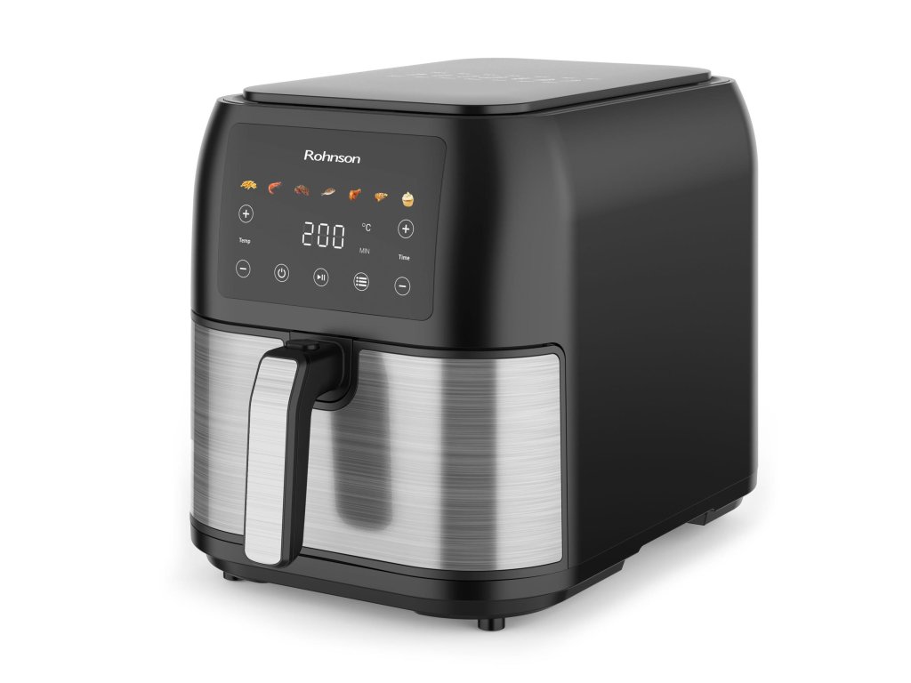Slim teplovzdušná fritéza R-2861 Objevte nový štandard prípravy zdravých jedál s teplovzdušnou fritézou R-2861, ktorá spája inovatívnu technológiu s elegantným dizajnom. Tento 1700W model prináša revolúciu vo vašom varení vďaka veľmi štíhlemu dizajnu, ktorý sa hodí do každej kuchyne. Vďaka 360 ° 3D rovnomernému systému ohrevu a schopnosti fritovať až s 80% menším množstvom oleja pripravíte chutné pokrmy bez nadmerného množstva tuku a nepríjemných pachov. Fritéza R-2861 je vybavená veľkou odnímateľnou nádobou s objemom 8 litrov, ktorá sa ľahko čistí a udržiava. Moderný farebný dotykový panel LED ponúka 7 prednastavených automatických programov a umožňuje presné nastavenie teploty od 80 do 200 °C. Medzi ďalšie výhody patrí funkcia automatického pripomínania miešania pre rovnomerné varenie, tepelne izolovaná rukoväť s dětskou poistkou pre maximálnu bezpečnosť a ochrana proti prehriatiu. Špecifické vlastnosti Príkon 1700 W Mimoriadne štíhly dizajn Fritovanie s nízkym obsahom tuku - až o 80 % menej oleja Zdravšia príprava jedla bez nepríjemných pachov 360° 3D rovnomerný systém ohrevu Veľká vyberateľná 8 l nádoba na jednoduchú údržbu Barevný dotykový panel LED 200 °C Nastaviteľný 60-minútový časovač s automatickým vypnutím Funkcia automatického pripomenutia miešania Tepelne izolovaná rukoväť s dětskou poistkou Ochrana proti prehriatiu Príslušenstvo vhodné na umývanie v umývačke riadu Funkcia Typ fritovania horúcim vzduchom áno Časovač áno Nepriľnavý povrch áno Sklenený priezor áno Počet prednastavených programov 7 Termostat áno Svetelná indikácia prevádzky áno Indikácia dosiahnutej teploty áno Indikácia času áno Ochrana proti prehriatiu áno Objem fritézy 8 l Materiál fritovacieho koša/roštu hliník Materiál fritovacieho hr áno Displej áno Funkcia pripomenutia miešania áno Odnímateľná nádoba áno Dotykové ovládanie Počet fritovacích košov/roštov 1 Automatické vypnutie áno Zvukový signál áno Tepelne izolovaná rukoväť áno Tvar fritovacieho koša čtvercový Protišmykové nožičky áno Uloženie napájaciehoDodatočné parametre
