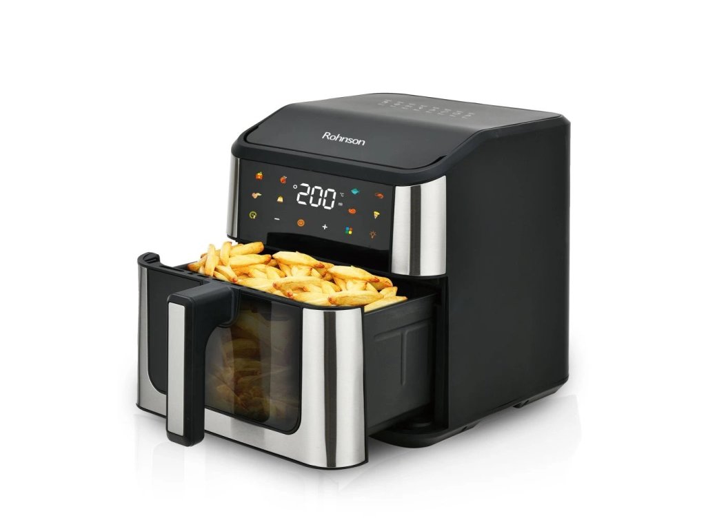 Veľká vyberateľná nádoba s objemom 8 l s jednoduchou údržbou Fritovanie s nízkym obsahom tuku - až o 80 % menej oleja Zdravšia príprava jedla bez nepríjemných pachov 360° 3D rovnomerný systém ohrevu Priezor na sledovanie procesu varenia Farebný dotykový panel LED s 8 prednastavenými automatickými programami Nastavenie teploty od 80 do 200 °C Integrované vnútorné osvetlenie na monitorovanie stavu prípravy jedla Nastaviteľný 60-minútový časovač s automatickým vypnutím Tepelne izolovaná rukoväť Ochrana proti prehriatiu Príslušenstvo vhodné na umývanie v umývačke riadu Príkon 1500 W Kategória: Teplovzdušné fritézy Záruka: 2 roky EAN: 5202561546255 Automatické vypnutie: Áno Časovač: 1 - 60 min. Displej: Áno Funkcia pripomenutia miešania: Áno Indikácia času: Áno Indikácia dosiahnutej teploty: Áno Materiál panvice: Materiál: za studena valcovaná oceľ + nepriľnavý povrch Materiál fritovacieho koša/roštu: Materiál: za studena valcovaná oceľ + nepriľnavý povrch Nastaviteľná teplota: 80 - 200 °C Nastaviteľný časovač: Áno Nepriľnavý povrch: Áno Kapacita fritovacieho hrnca: 8 l Objem fritovacieho koša/misky: Mriežka: Ochrana proti prehriatiu: Áno Ovládacie prvky: Dotykové ovládanie: Počet fritovacích košov/roštov: 1 Počet prednastavených programov: 8 Protišmykové nožičky: Áno: . Spotreba energie: 1500 W Rozmery grilu: cm Sklenený priezor: Sklenené sklo: Áno Sušenie ovocia: Nie Svetelná indikácia prevádzky: Áno Šírka: cm Tepelne izolovaná rukoväť: Áno Termostat:: Áno Tvar fritovacieho koša: Hranatý Typ fritovania: Horúci vzduch Uloženie napájacieho kábla: Nie Odnímateľné časti: Odnímateľné časti: Áno Odnímateľná nádoba: Áno Zvukový signál: Áno Farebný odtieň:: Čierna, striebornáDodatočné parametre