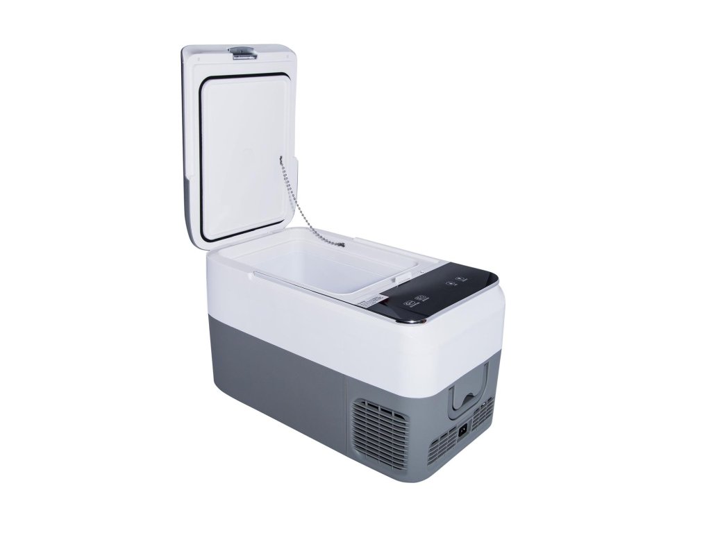 Popis produktu Špecifické vlastnosti: Prenosná kompresorová autochladnička Chladenie potravín a nápojov Ideálne do auta, na loď, kempovanie, grilovanie, k bazénu aj do domácnosti Objem 26 litrov je ideálny pre celú rodinu Možnosti napájania – 12 V, 24 V alebo 230 V Digitálna regulácia teploty Vďaka vysoko výkonnému kompresu spotrebiče Celomedený kondenzátor Inteligentná automatická detekcia nízkeho napätia a automatické vypnutie Horné otváranie veka a bezpečnostný zámok Ergonomická rukoväť Vysoko kvalitná izolácia udrží potraviny i nápoje vychladené ešte dlho po odpojení napájania Ochrana proti vybitiu akumulátora Energetická trieda A Ekologické chladivo R6 320 x 350 mm AC 230 V 50 Hz, DC 12/24 VDodatočné parametre