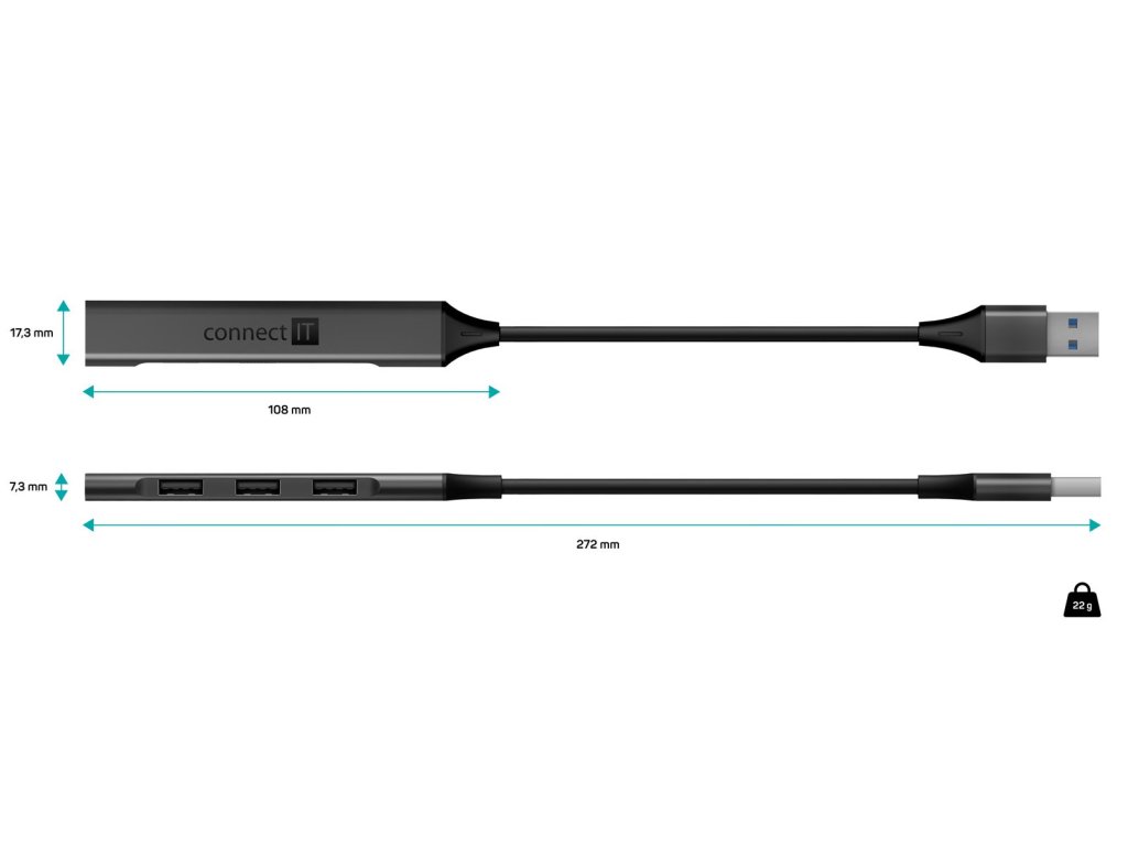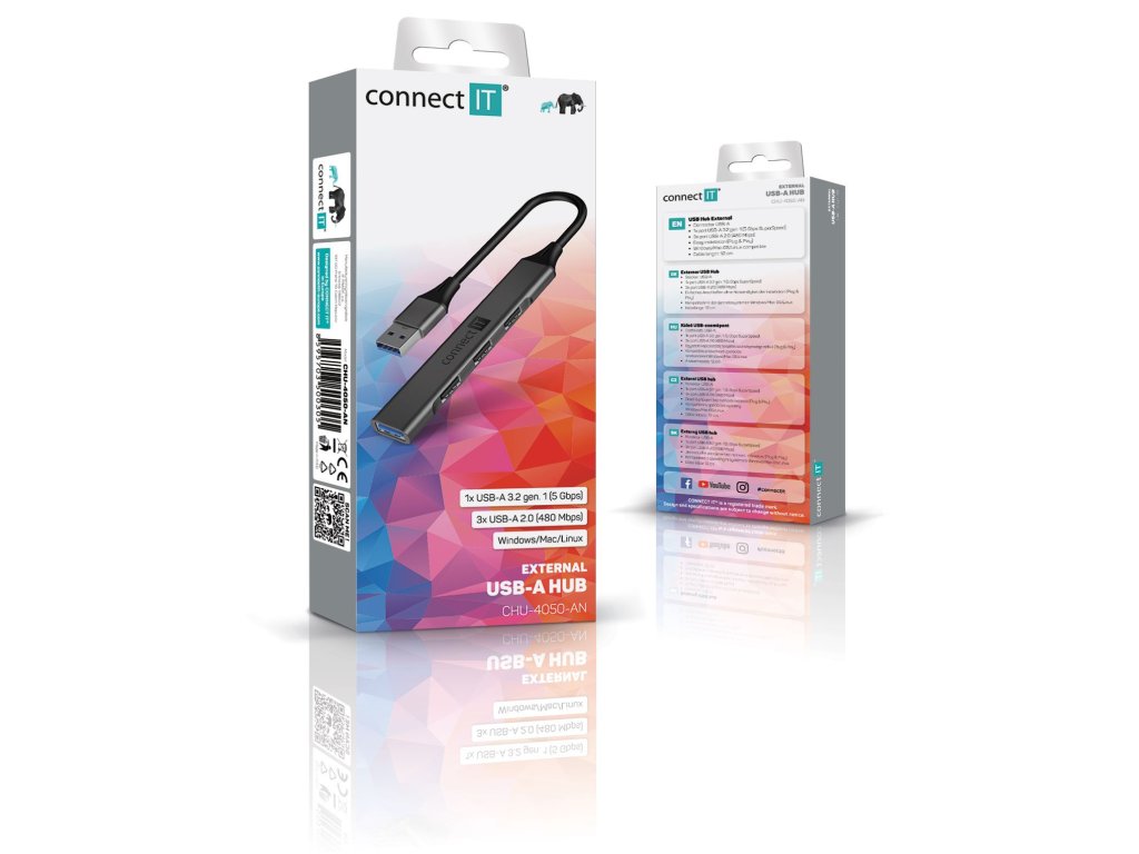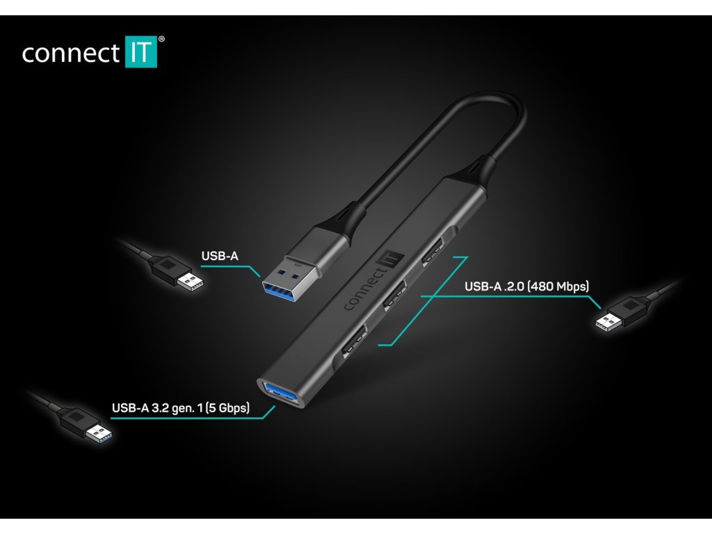 Rozbočovač Connect IT USB-A, (1xUSB-A 3.0, 3xUSB-A 2.0), externý, antracitová