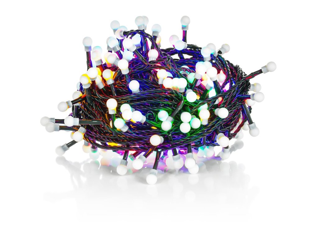 Vianočná čerešňová reťaz 8 FCE 100LED Časovač: 6/18 h Celková dĺžka kábla: 15 m Dĺžka svietiaceho kábla: 10 m Dĺžka kábla: 5 m Počet LED diód: 100 8 funkcií: 1. Bliká v intervale 1 sekundy a potom sa postupne zrýchľuje 2. Pomalé rozsvecovanie, zhasínanie a striedanie všetkých LED diód 3. Striedavé blikanie, potom rýchle striedavé blikanie všetkých LED diód 4. Pomalé rozsvecovanie a zhasínanie všetkých diód 5. Striedavé blikanie diód 6. Rovnomerné svietenie 7. imitácia blikania, potom striedavé zrýchlené blikanie, potom pomalé striedavé zapínanie a vypínanie svetla 8. Spomalené imitujúce blikanie Farba svetla: viacfarebná Na vnútorné a vonkajšie použitie Ochrana: IP 44Dodatočné parametre